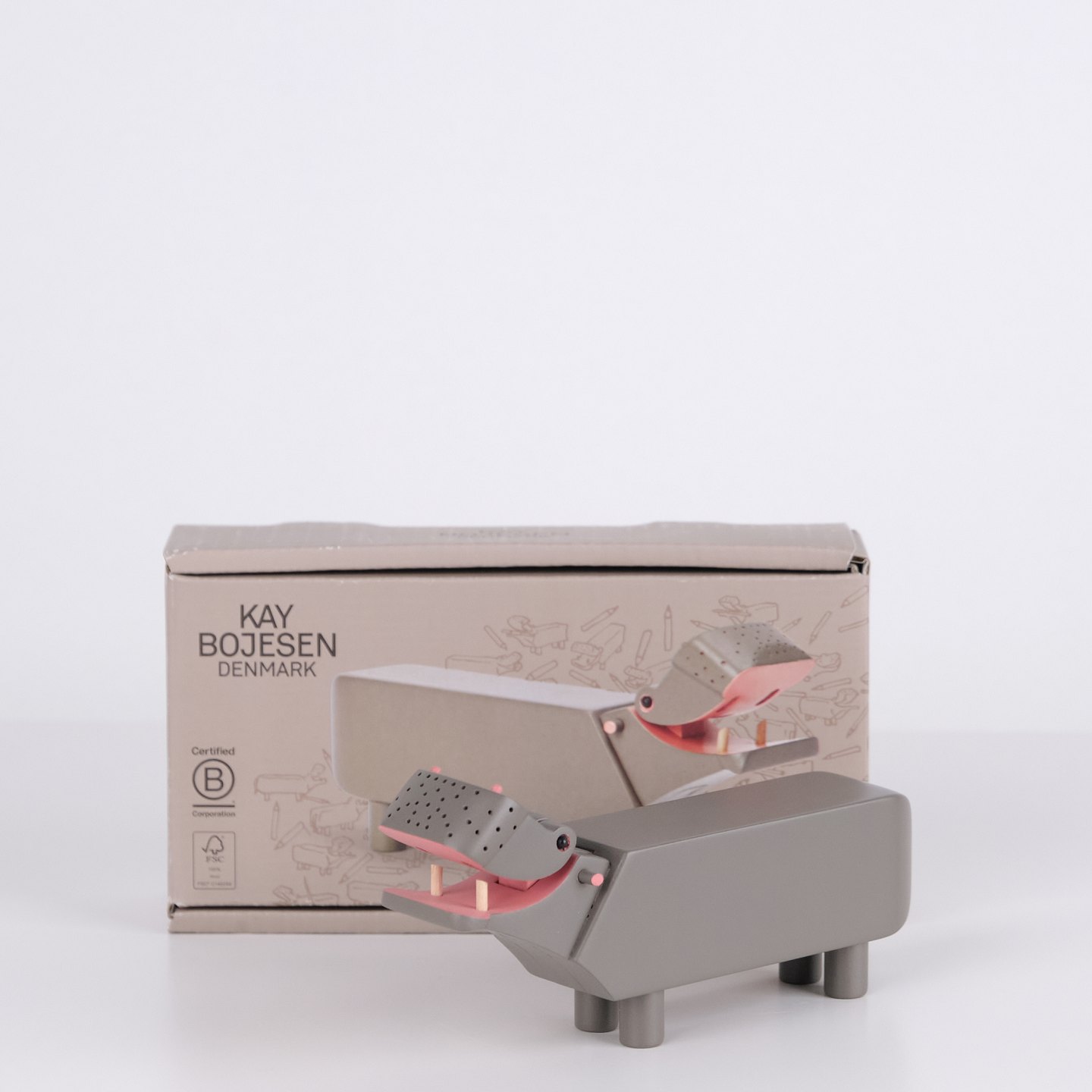Lilliput Flodhest designet af Kay Bojesen udført i grå bemaling. Jubilæumsudgave lanceret i forbindelse med 70 års markering af den originale flodhest fra 1955. Modellen er produceret i FSC-certificeret bøgetræ og fremstilles i mindre format end den klassiske version. Kay Bojesens trædyr er blandt de mest kendte designobjekter inden for dansk design og samlerobjekter.— Oprindelse: Danmark
