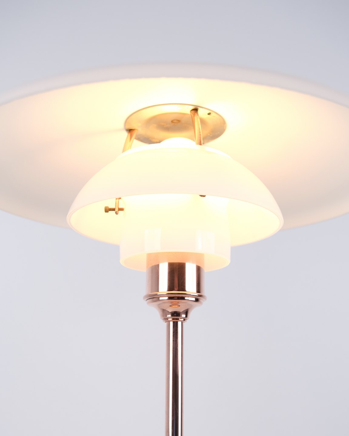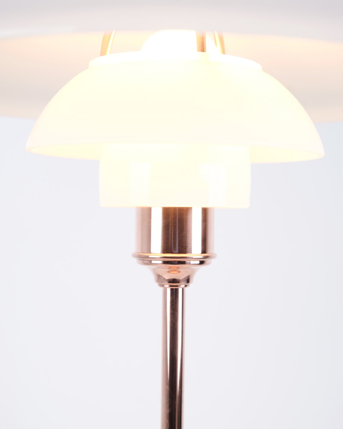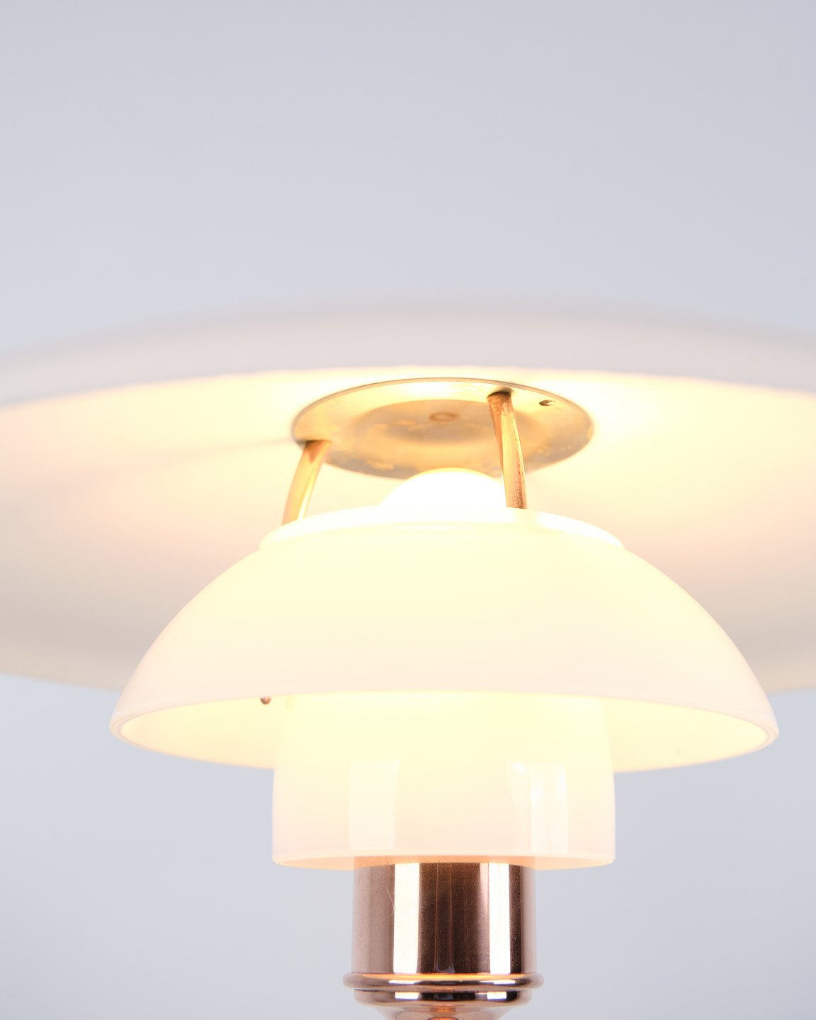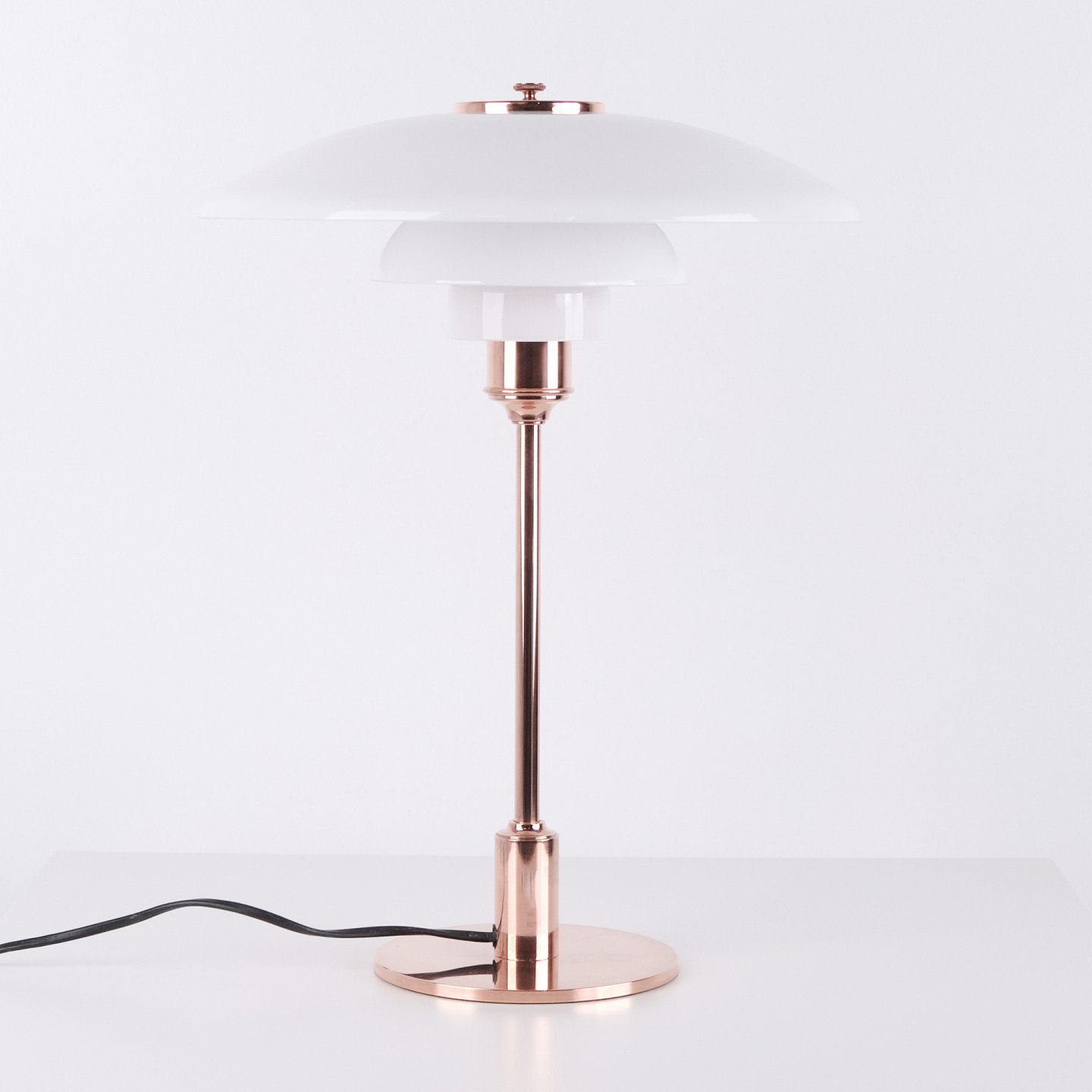 PH Bordlampe, model PH3½-2½, limited edition, designet af Poul Henningsen og fremstillet af Louis Poulsen. Lampen er fremstillet i kobber med overskærm i kobber og to underskærme i hvid opal glas. Der medfølger også en overskærm i hvid opalglas. Den blev solgt i en begrænset periode i 2015.H: 45 Dia: 33