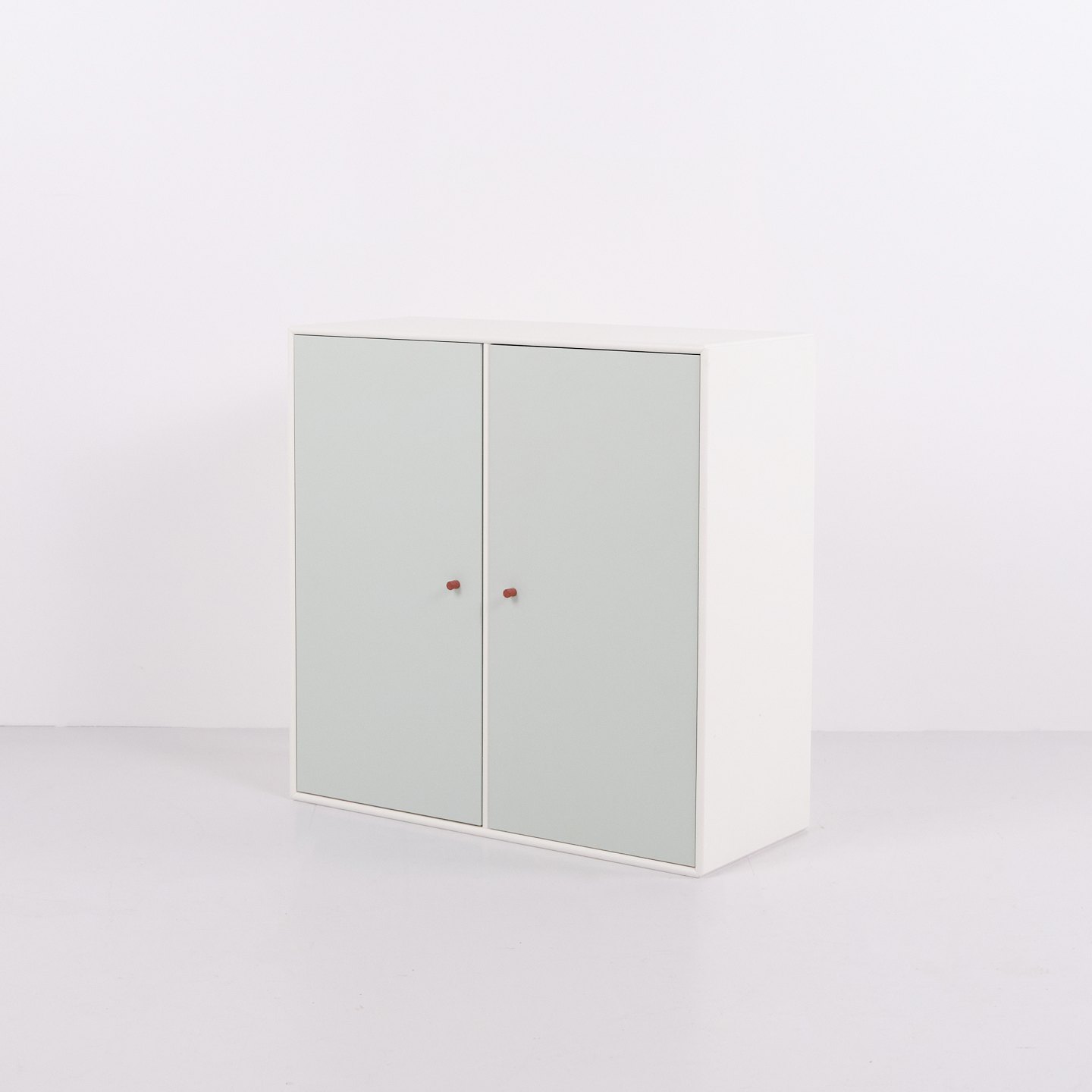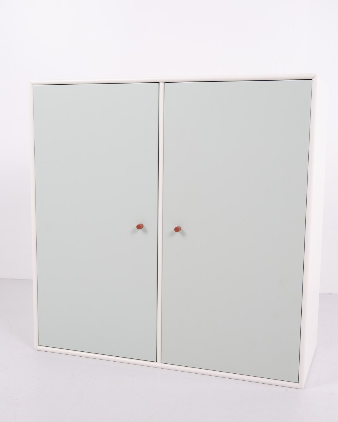 Montana skabmodul fra det modulære Montana System designet af Peter J. Lassen. Udført i lakeret MDF med hvid korpus, to mintgrønne låger og brune greb. Montana blev grundlagt i 1982 og er kendt for fleksible opbevaringsmoduler produceret i Danmark. Modellen kan anvendes som vægskab, entrémøbel, badeværelsesskab eller del af større Montana reolsystem. Montana fremstilles fortsat på Fyn og er kendt for høj finish samt stort farveudvalg.