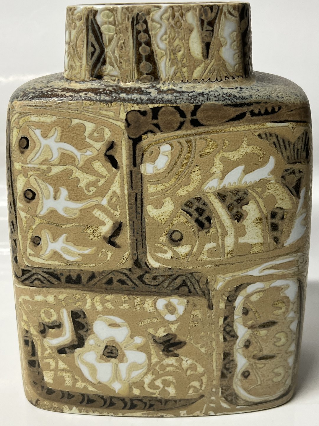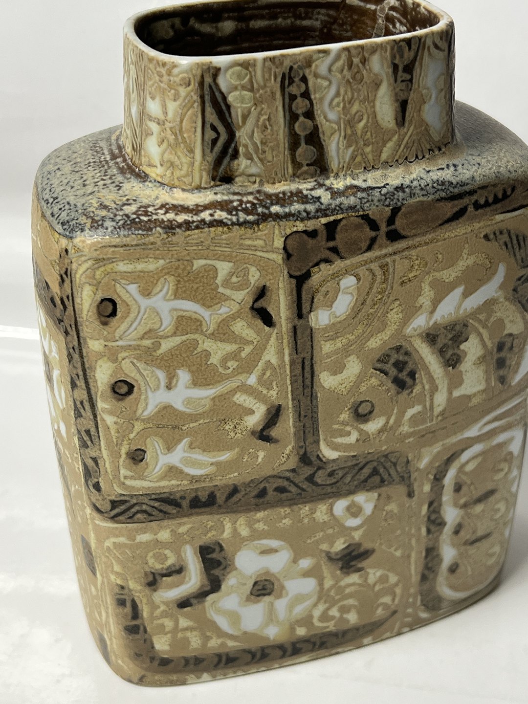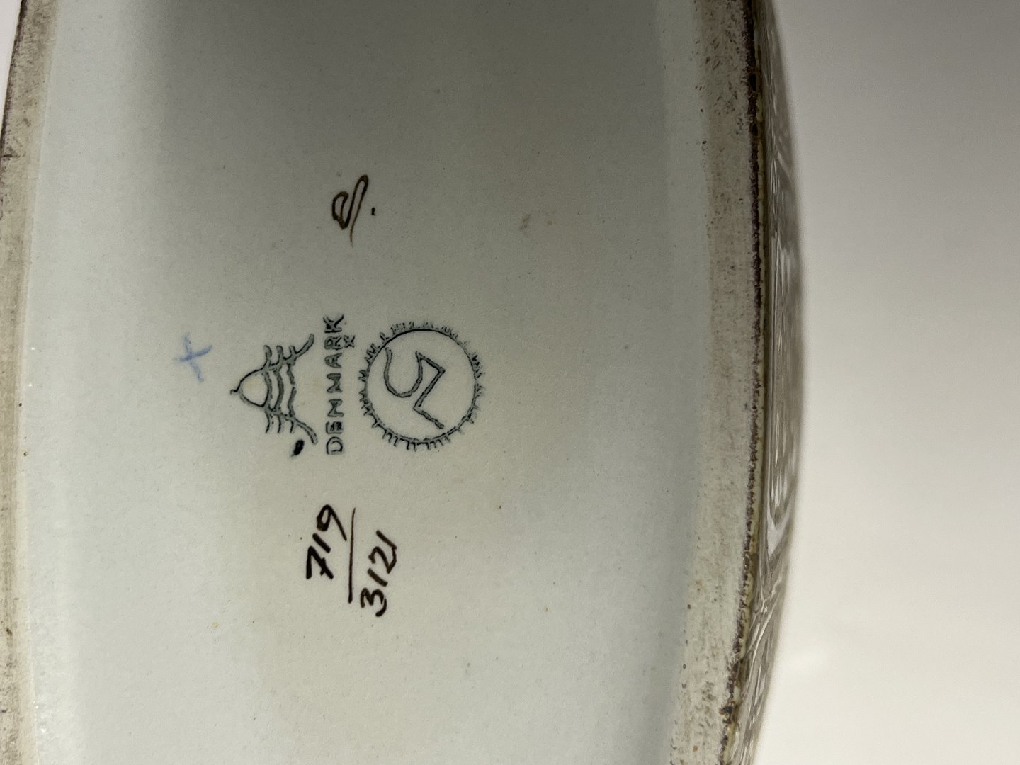 Baca blev først fremstillet hos Aluminia, men med sammenlægningen af de to fabrikker i 1968, overgik alt produktionen til Royal Copenhagen og blev stemplet med deres bomærke.Oprindeligt var Baca og Tenera tegnet af kvinder, ansat hos Aluminia, denne vases dekoration er tegnet af Nils Thorsson