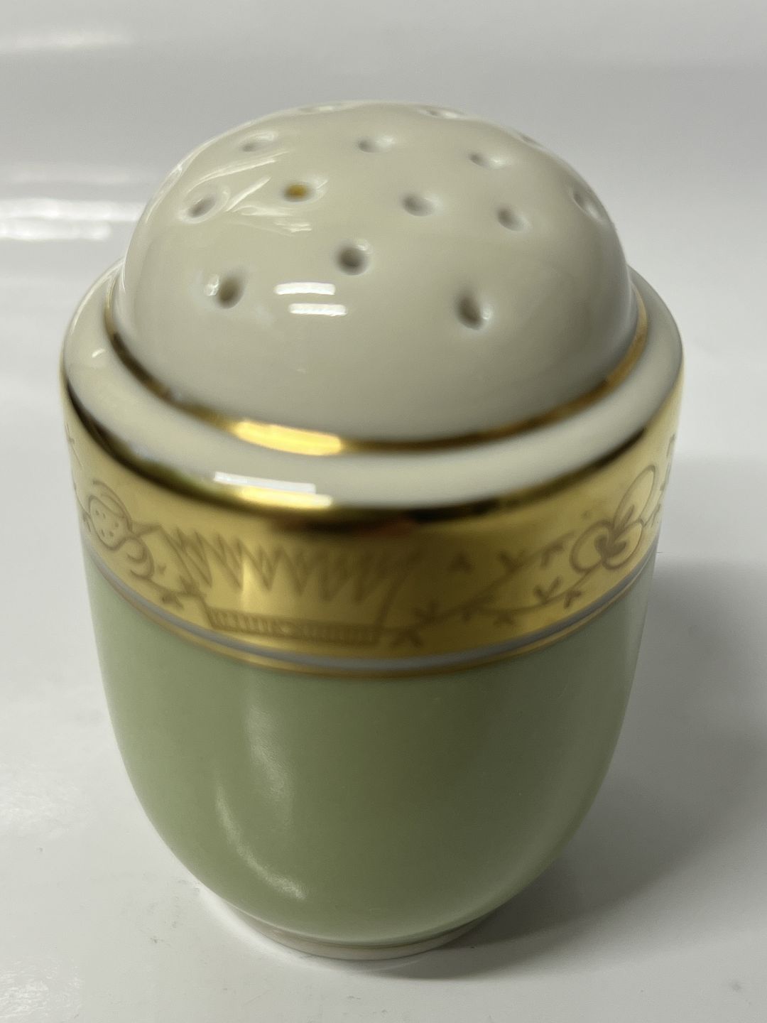 Royal Copenhagen Dagmar saltbøsse med bundprop.Dekorationsnummer 988/9758.