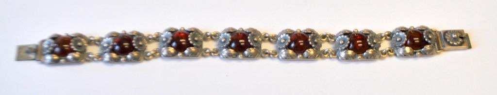 From, Niels Erik (1944 - 2009) Danmark: Armbånd i sterlingsølv med rav. Stemplet. L.: 20,5 cm.Emne nummer: 29061