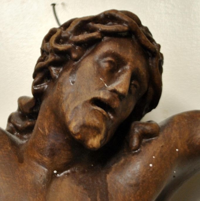 Den lidende Kristus. Bemalet gips, 19. årh. H.: 70 cm. B.: 47 cm.Emne nummer: 29112