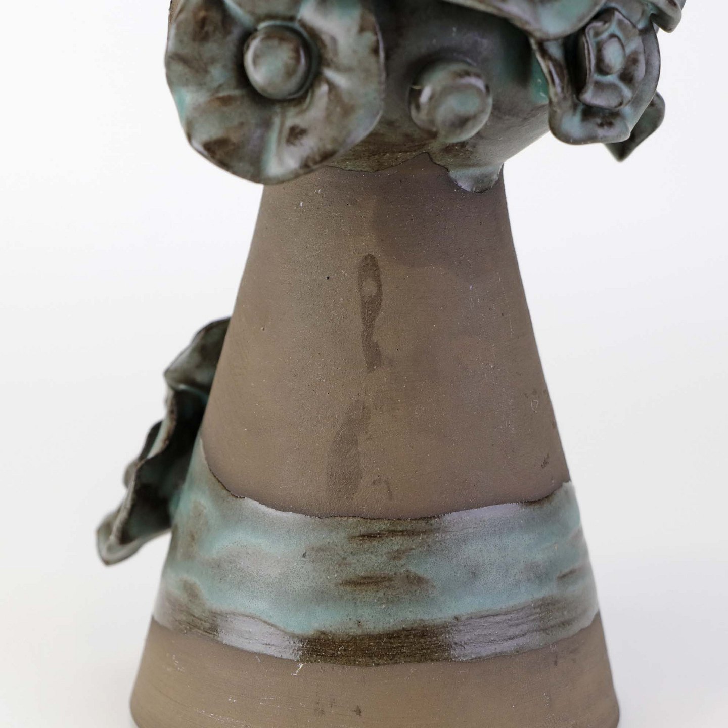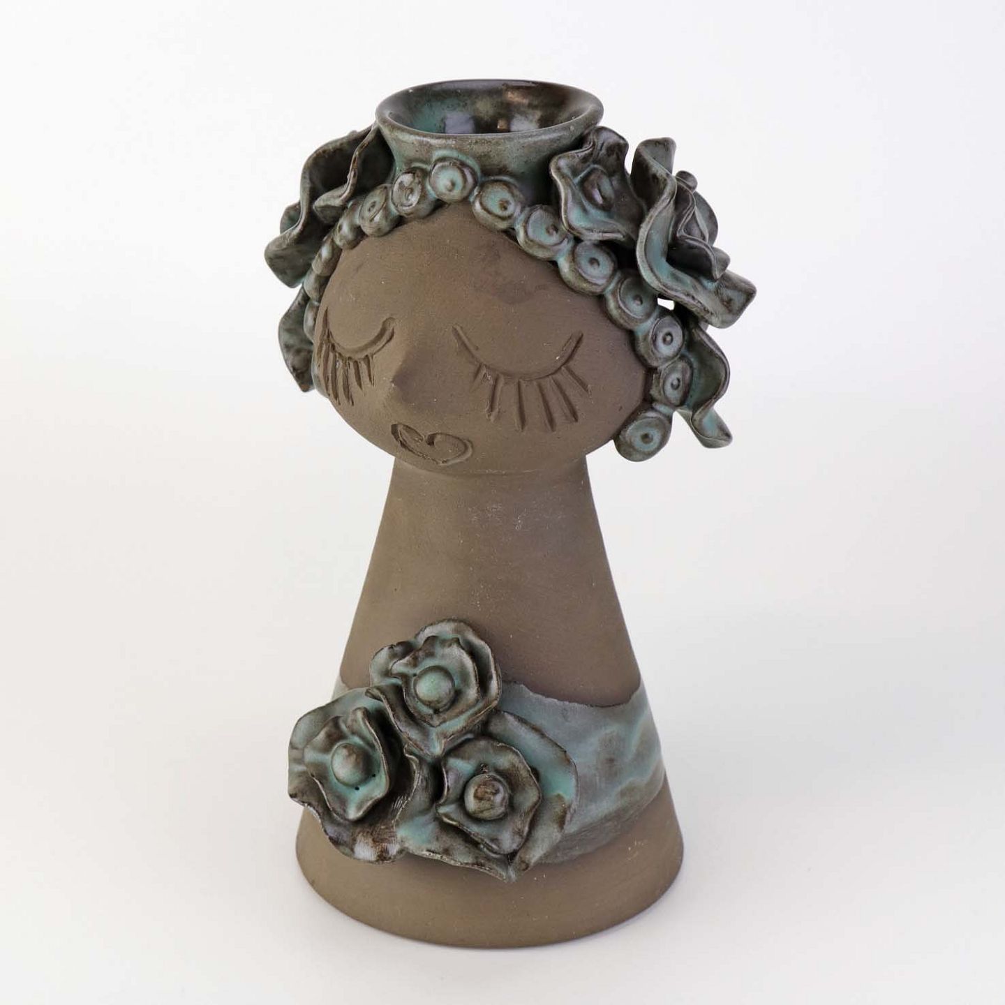 Vase i delvist glaseret keramik med motiv af Thurøpige med grønlig glasur.Producent Flemming Ross