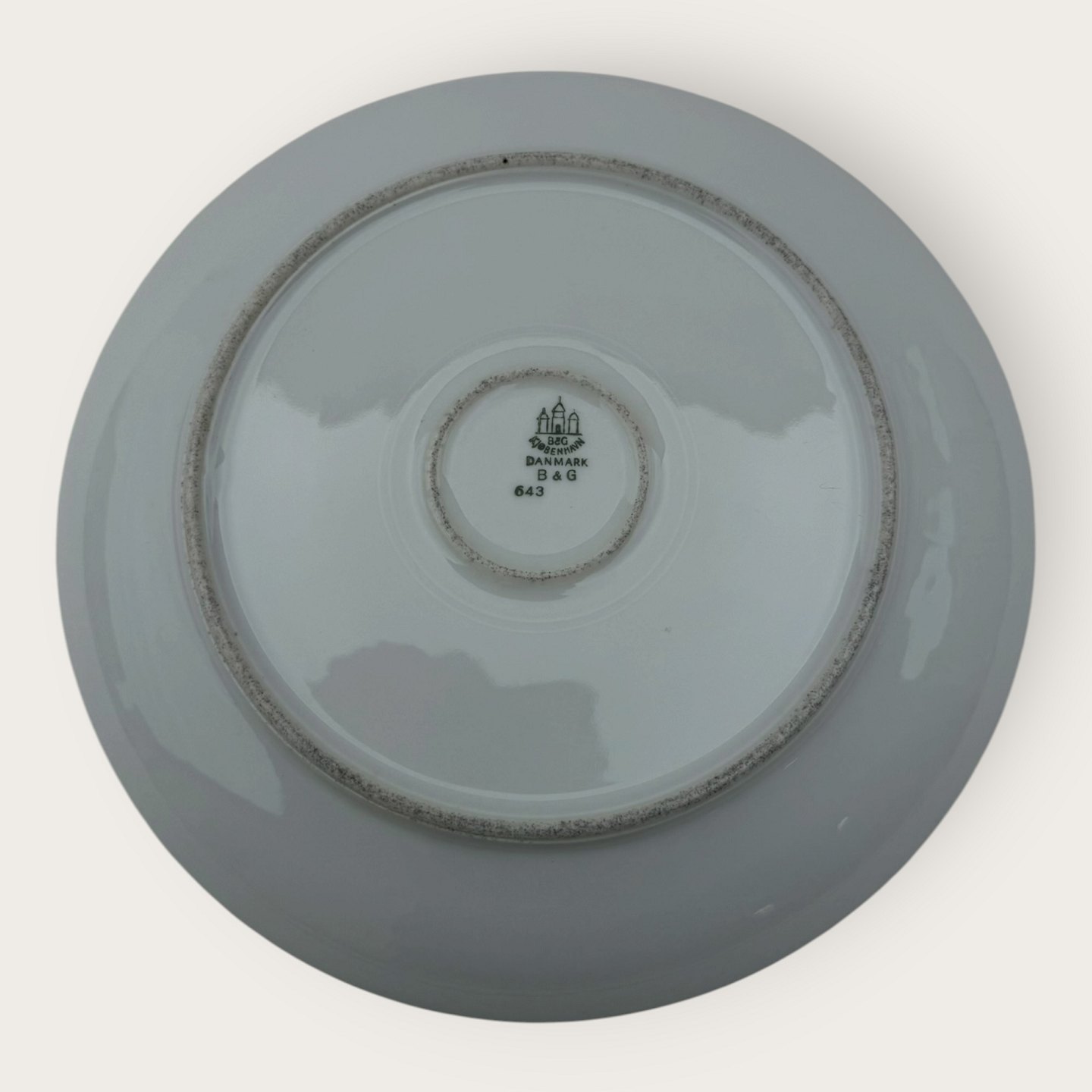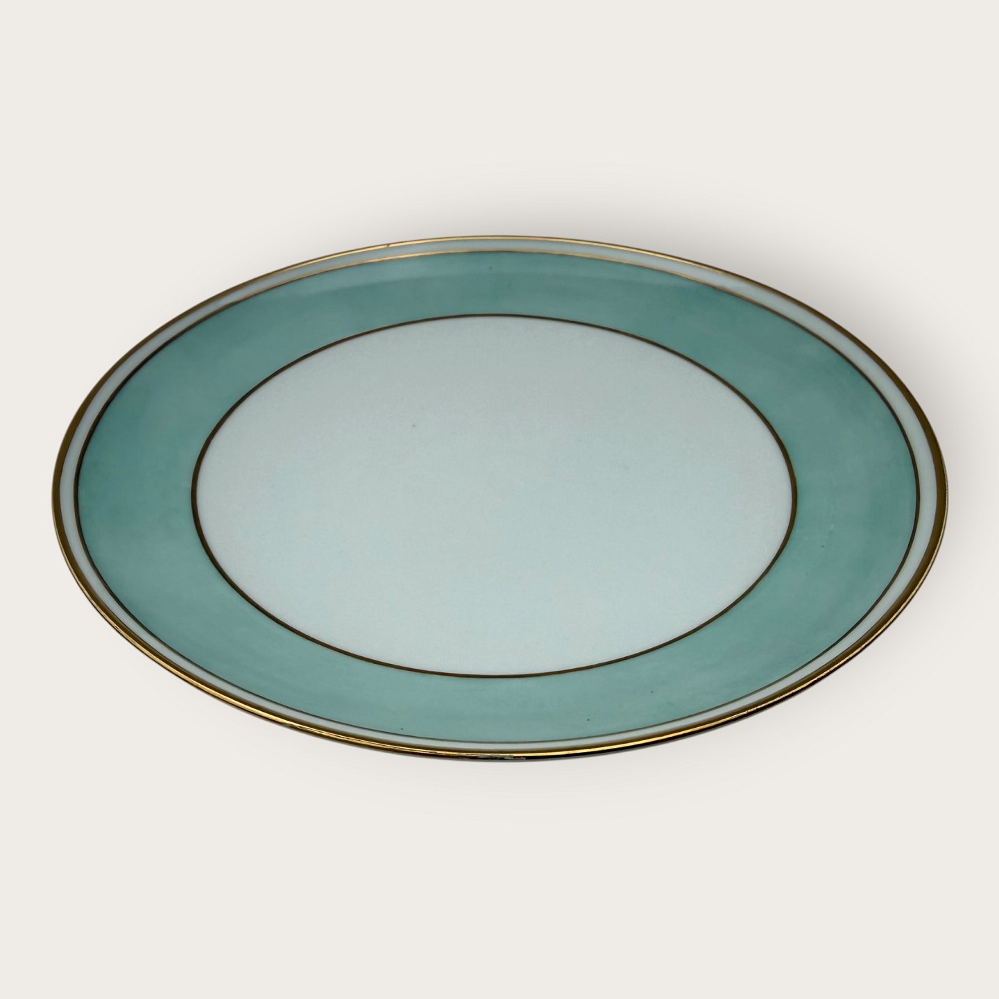Bing & Grøndahl, Form 643 med bred turkis dekoration og guldkant, Middagstallerken, diameter 23,5cm, 1. sortering, *pæn stand*Lager: 10