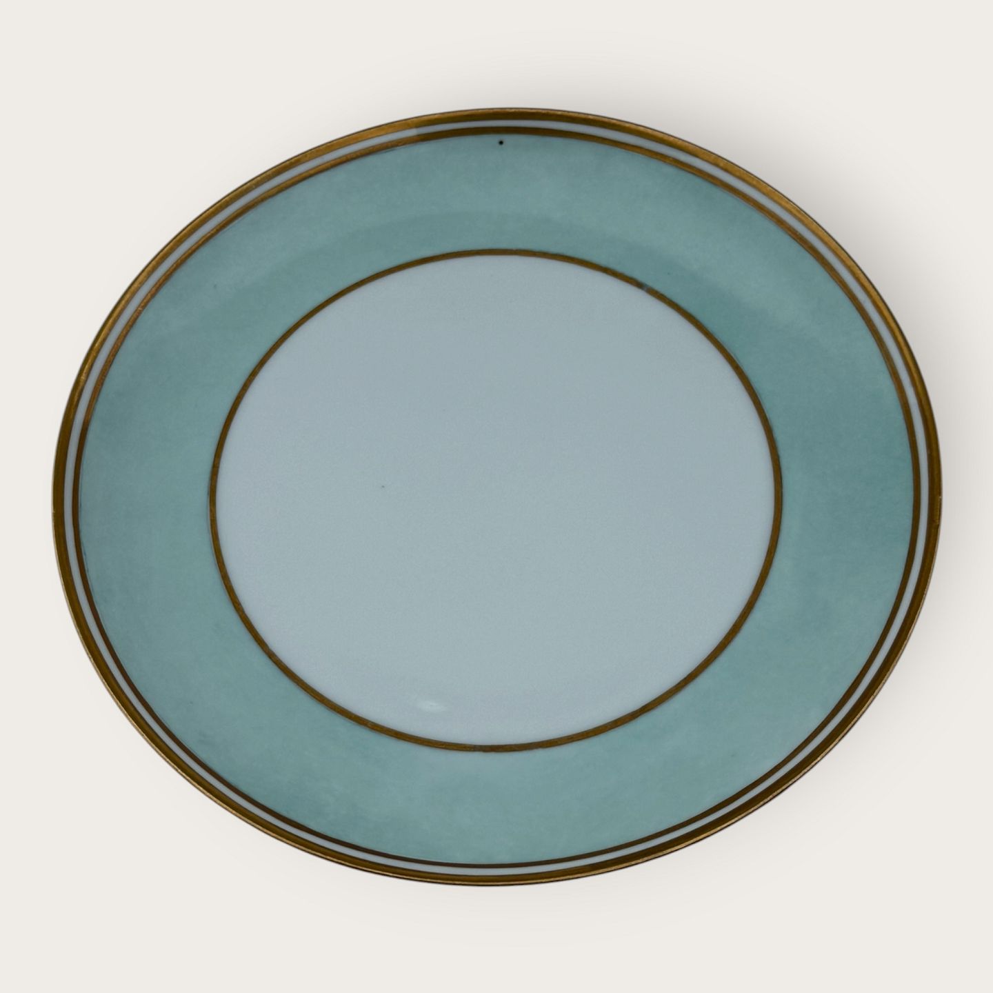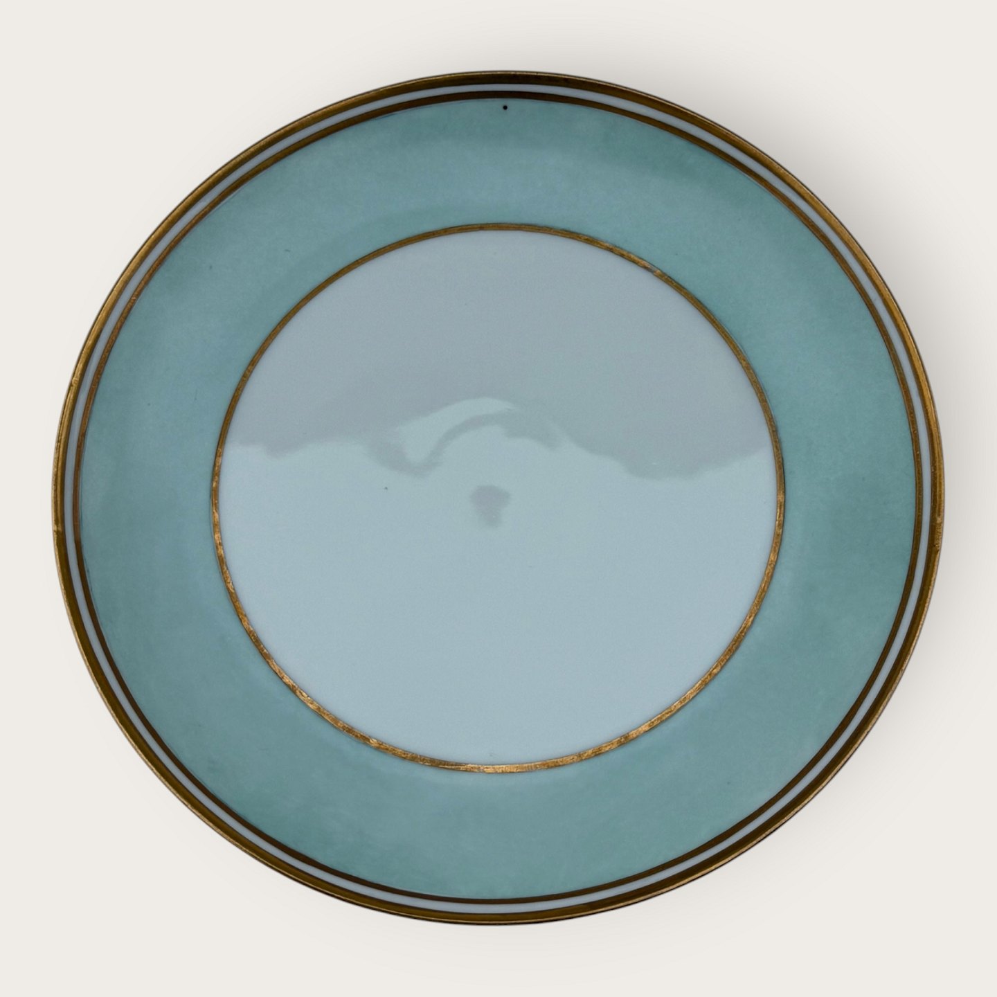 Bing & Grøndahl, Form 643 med bred turkis dekoration og guldkant, Frokosttallerken, #26, diameter 20,5cm, 2. sortering, *pæn stand*Lager: 8