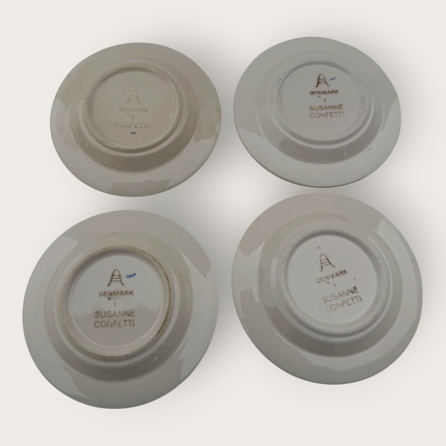 Royal Copenhagen, Aluminia, Confetti / Susanne, 4 små asietter, Gul og grøn, 9,5cm i diameter *pæn brugt stand*Lager: 1