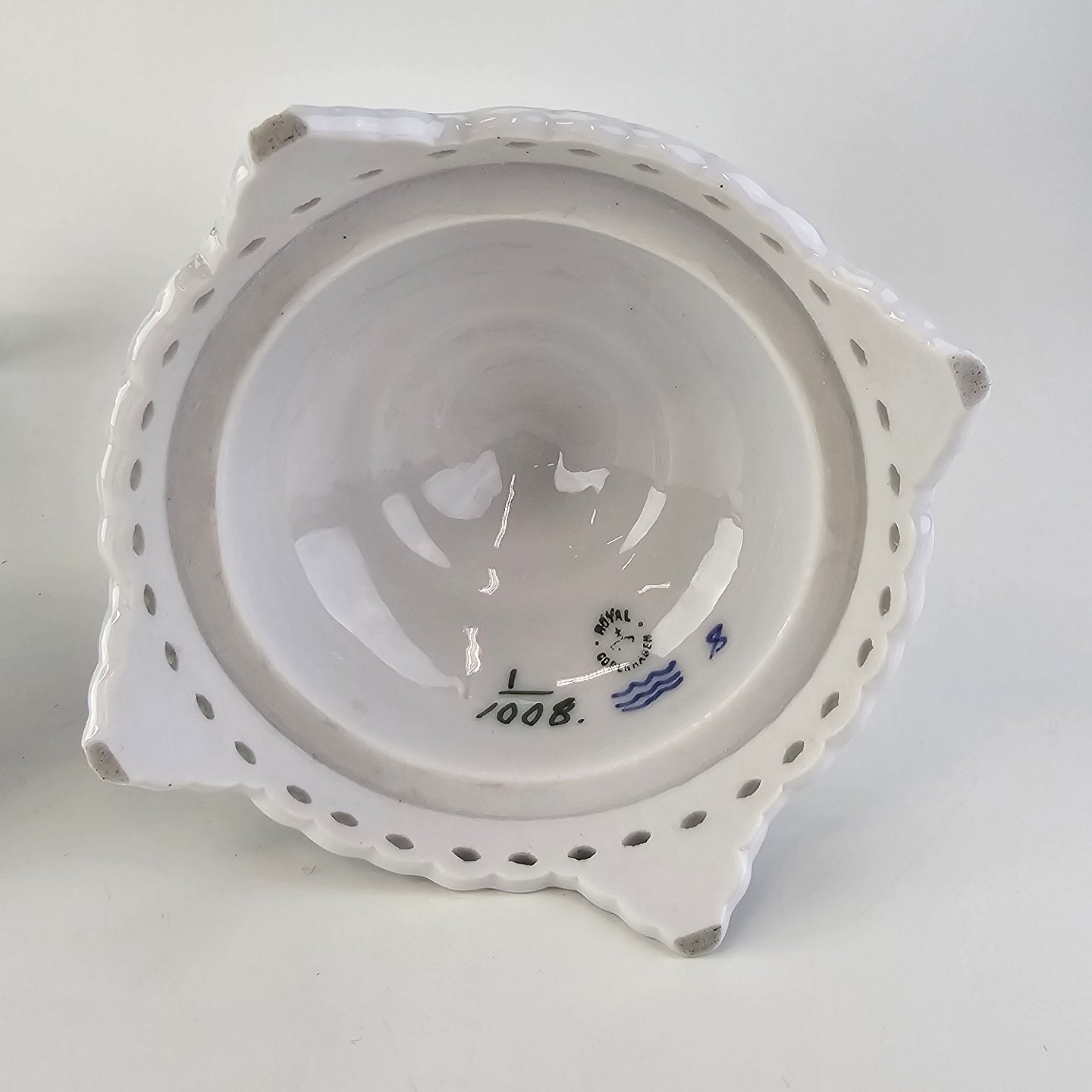 Sæt af to lysestager i kongeligt porcelæn fra stellet Musselmalet Helblonde. Nr. 1/1008Design Arnold Krog