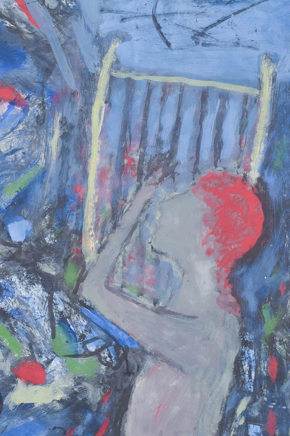 Viggo Loos, oliemaleri på plade, listet svensk billedkunstner.Abstrakt komposition med dynamisk penselføring og lagdelte farvefelter i blå, grønne og røde nuancer, udført i olie på plade. Usigneret.