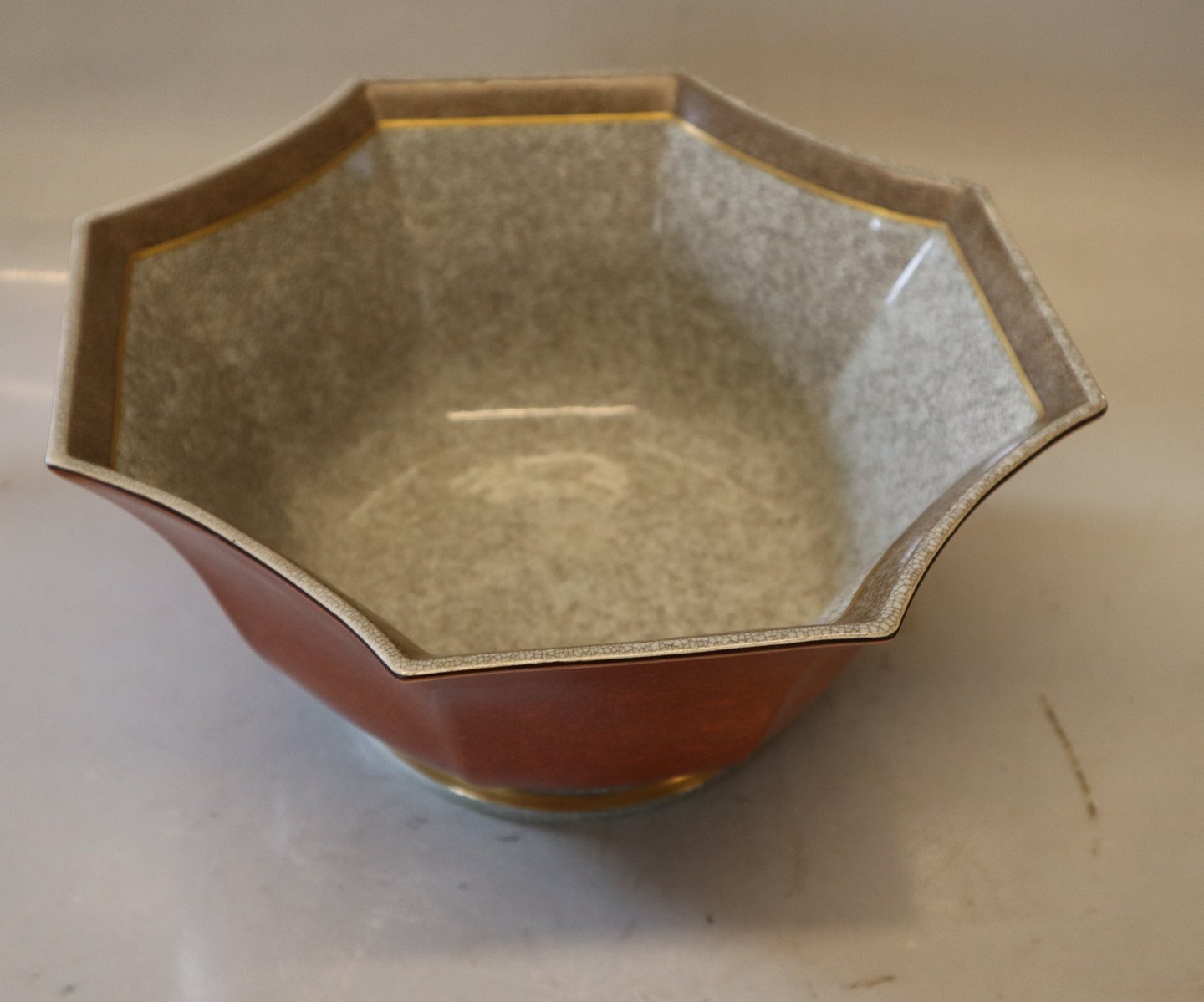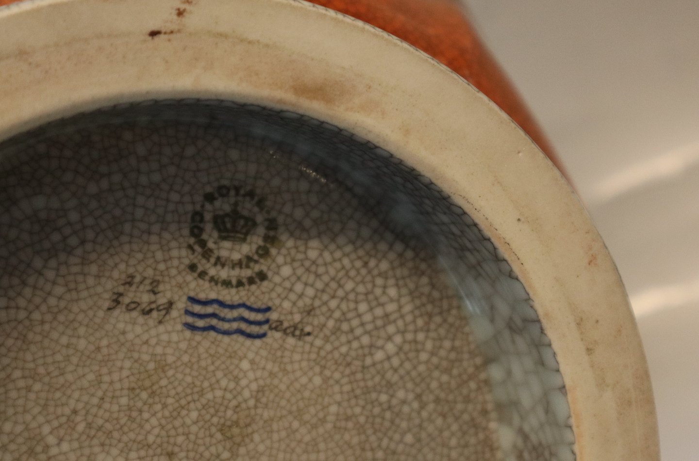 212-3069 Kgl. Orange skål med gråt og guld 13 x 28 cm Craquelé fra Royal Copenhagen I hel og fin standCraquelé, Craquele, Krakelé eller Krakkele (Crackelure) Krakeler