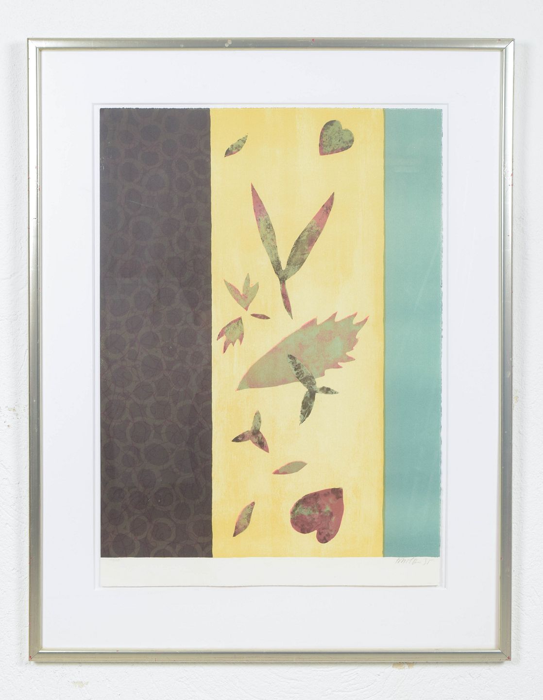 Bent Holstein, farvelitografi, listet dansk billedkunstner.Abstrakt komposition med svævende organiske former og dekorative elementer i bløde farveovergange, udført som farvelitografi, signeret og nummereret 106/150, dateret 1995.