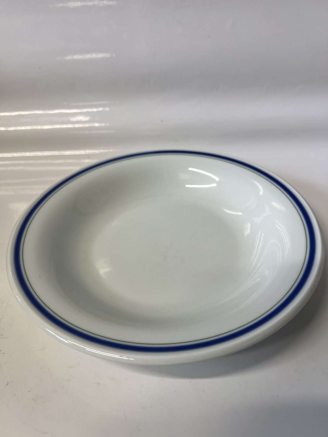 Bing og Grøndahl Jernporcelæn med blå og grøn kant Dyb tallerkenDekorationsnummer 714