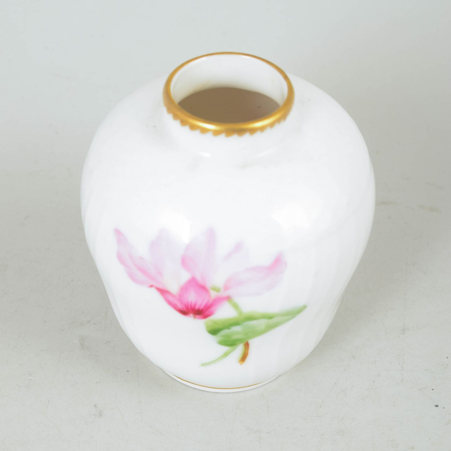 Royal Copenhagen Saksisk blomst, vase.Håndmalet porcelænsvase med blomsterdekoration i Saksisk blomst på hvid glasur, afsluttet med forgyldt kant ved hals og fod. 1. sortering.