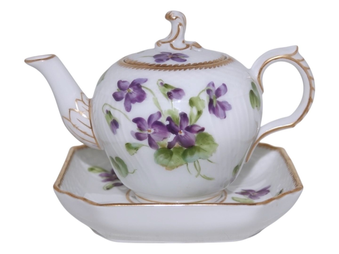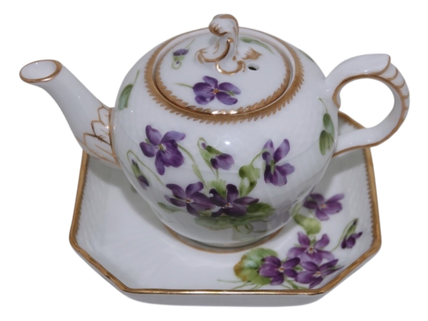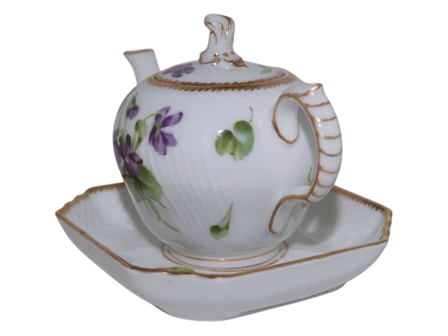 Royal Copenhagen Blå Violer med guldkant, mini mini tekande i dukkestel størrelse.Denne er produceret mellem 1894 og 1897.