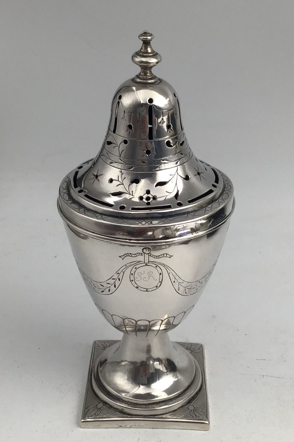 Frederik Janus Borchard Albrecht Creutzberg (1754-1826) Sølv StrødåseMåler H 17 cm (6.70 inch) Diam 7.3 cm (2.87 inch) Vægt 192.5 gr (6.79 oz) (Graveret 1796)
