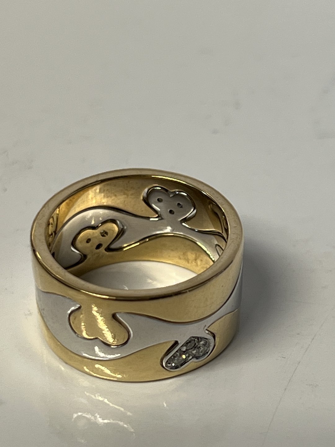 14 karat Damering, med indlagte brillanter, i rød og hvidguld.
