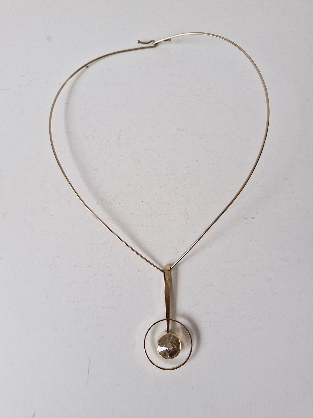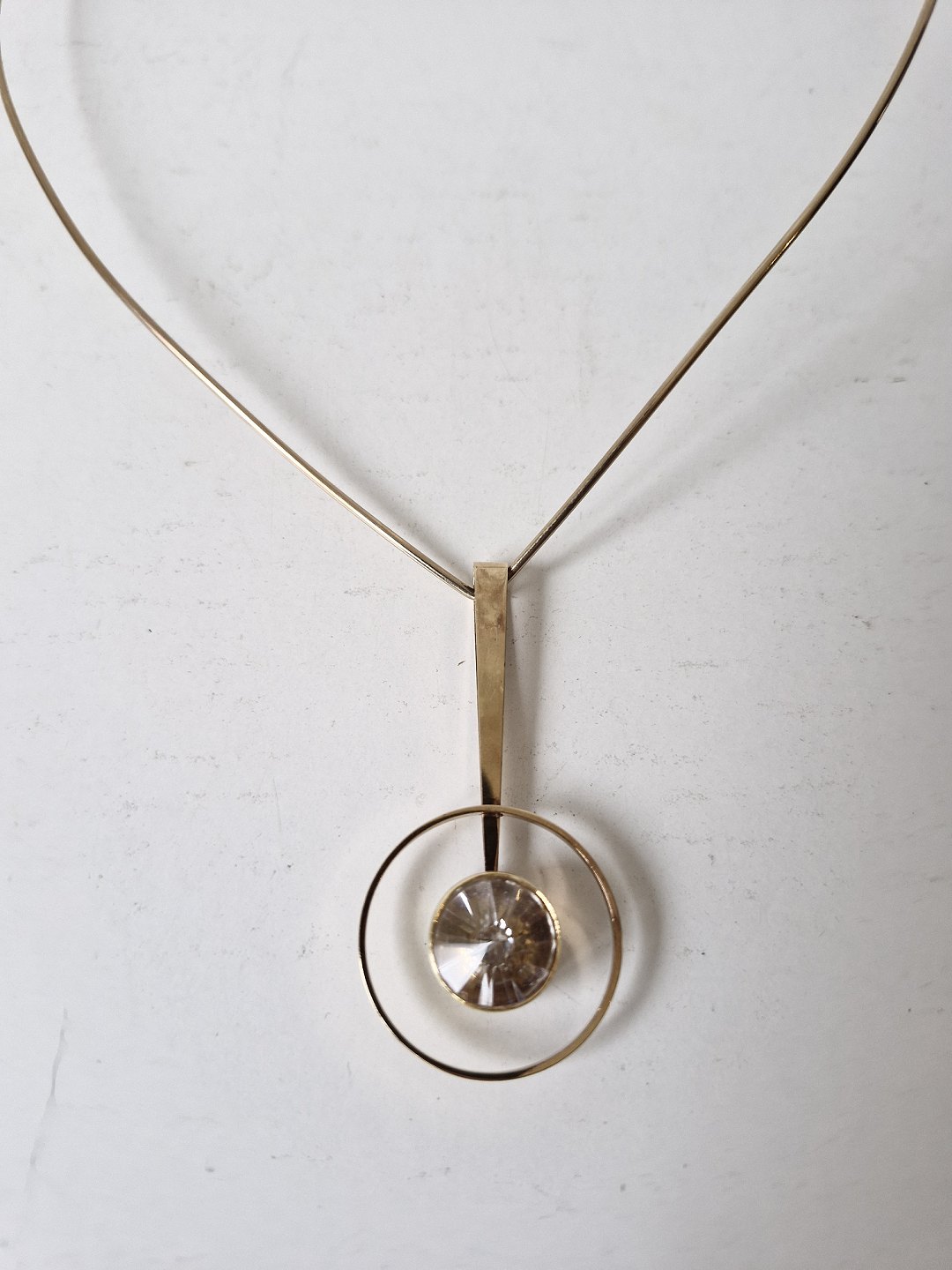 Bræmer Jensen halsring med vedhæng i 14 kt guld prydet med bjergkrystalStemplet Br.J - 585