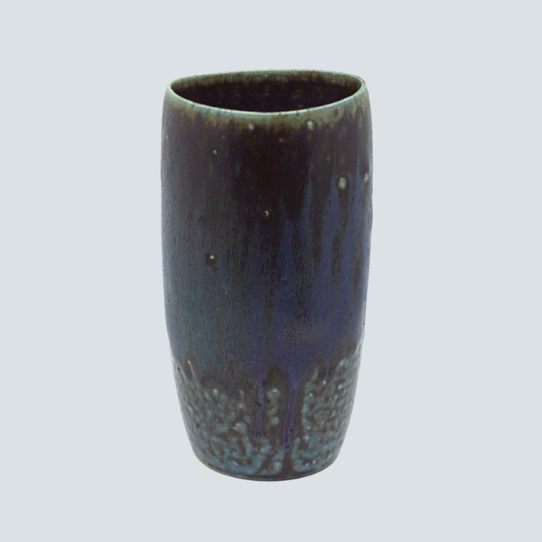 Arne Bang; Vase af stentøj med sort og blå glasur, nr. 3