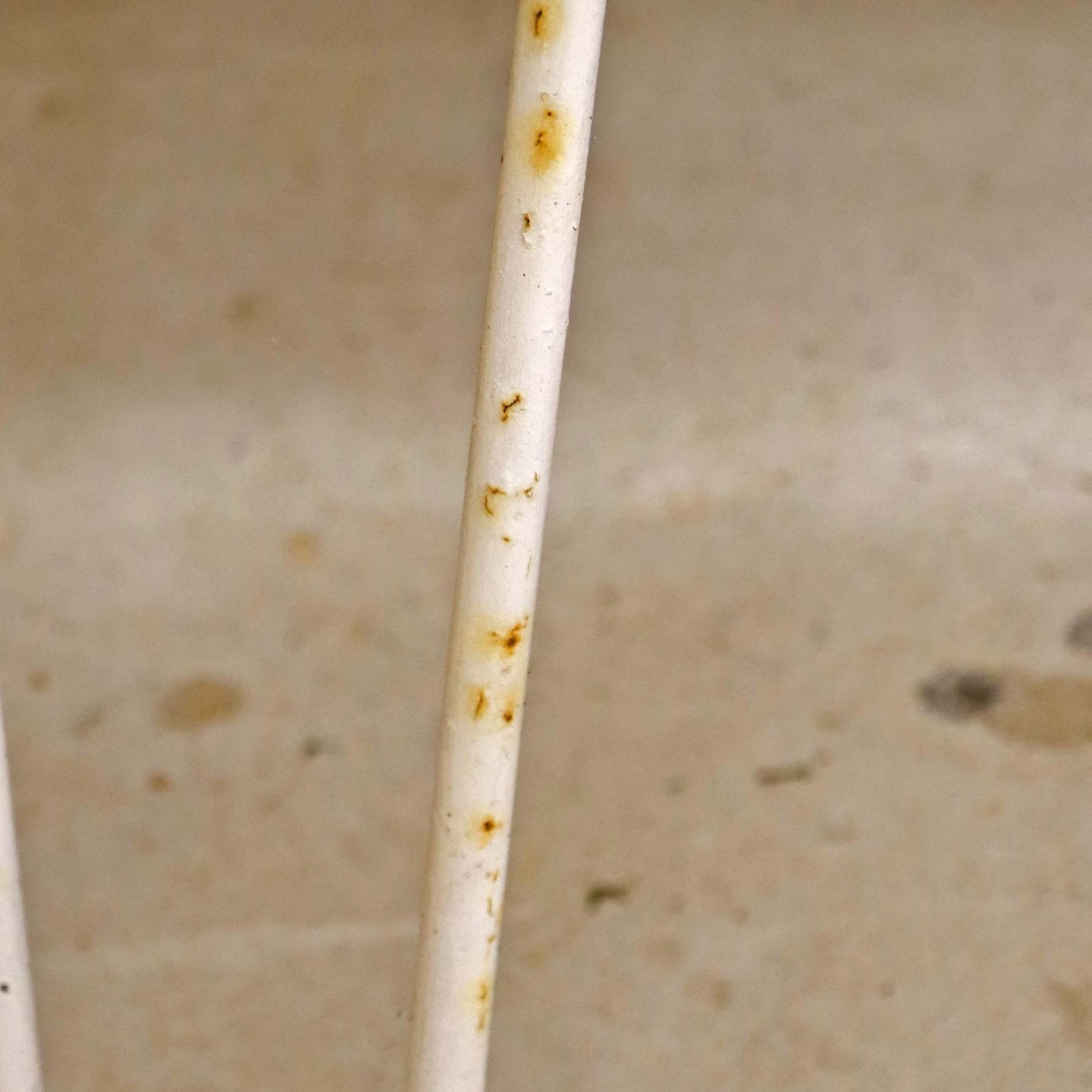 Fremstår med krakkeleret lakering på stel.