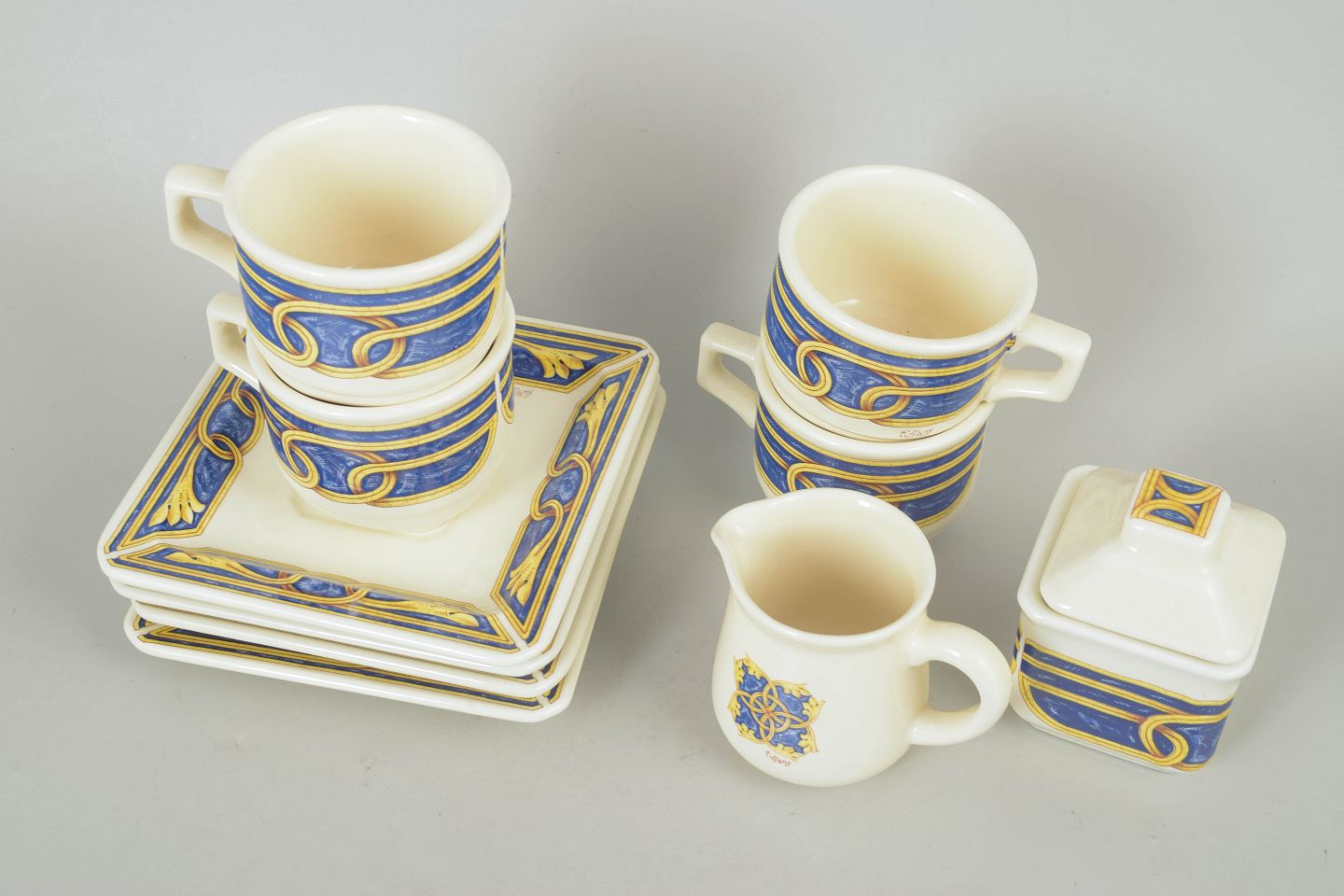Tiffany Boutique, sæt af fire kaffekopper med underkopper, sukkerskål og flødekande.