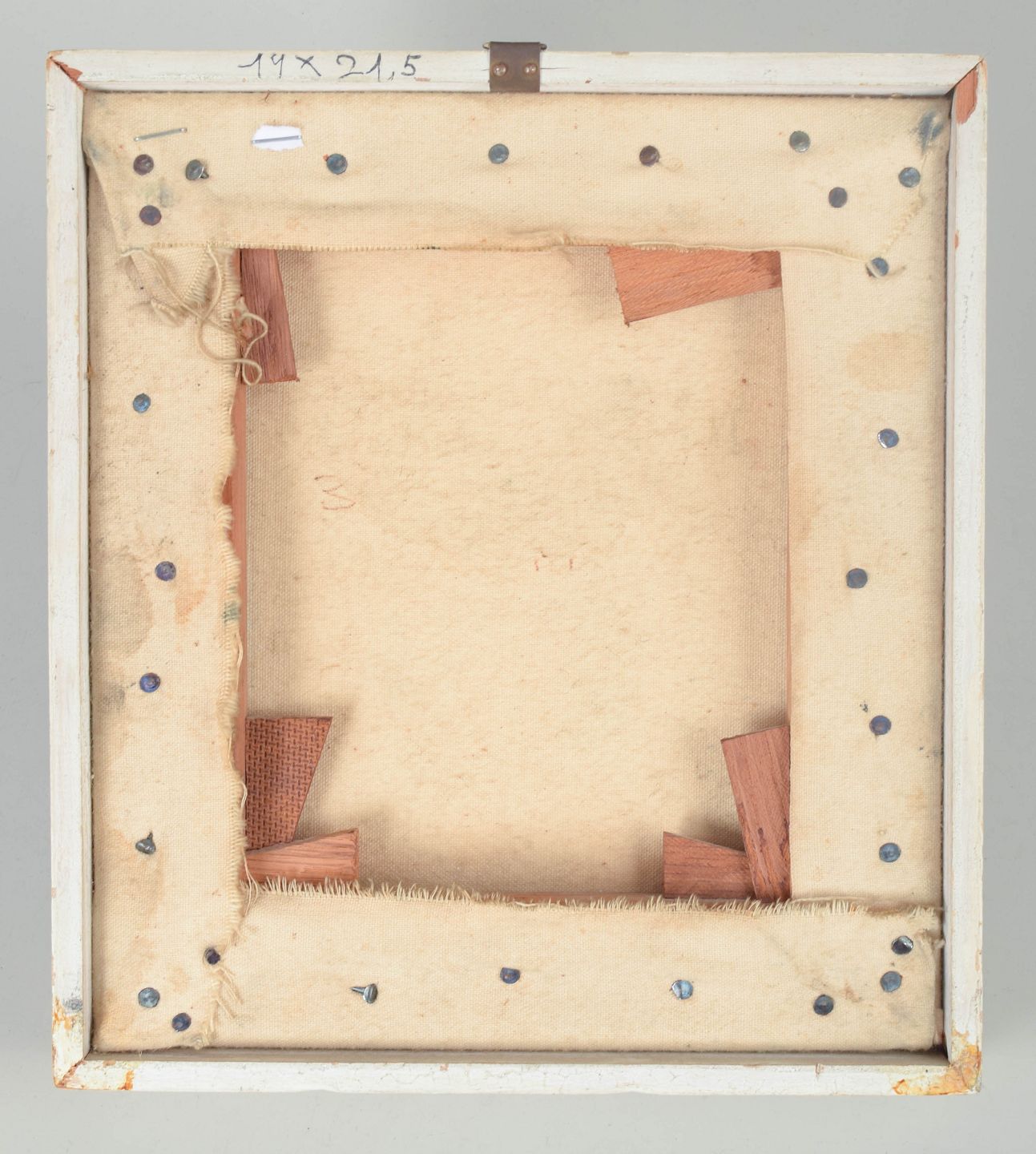 Dimensioner: lysmål 21 × 19,5 cm, total størrelse 21 × 23 cm.