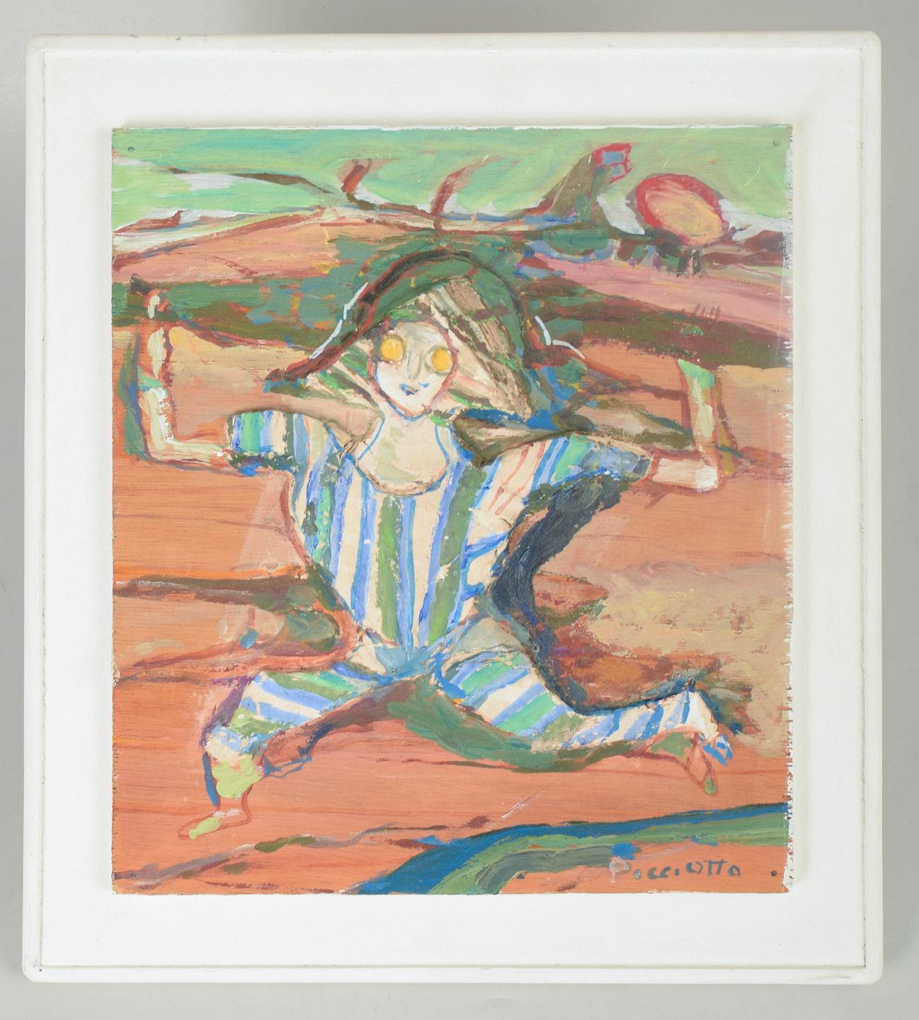 Simone Picciotto, mixed media på plade, italiensk kunstner.Ekspressivt figurativt motiv med bevægelse og levende farveføring udført i mixed media på plade, signeret.