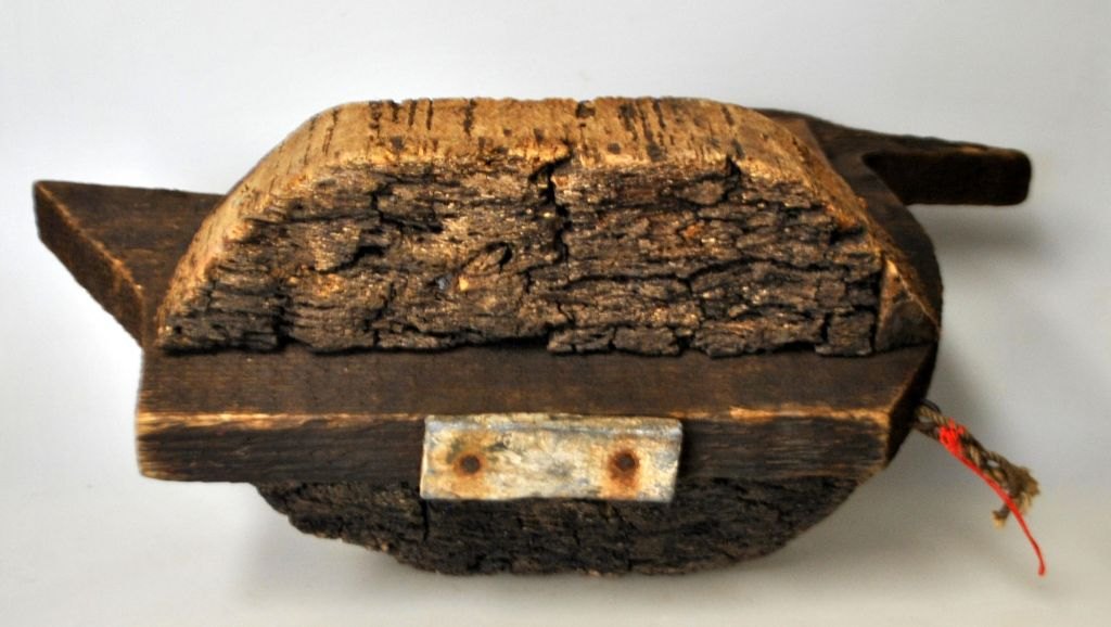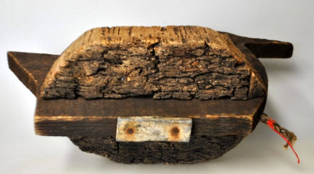 Lokkeand i træ og kork, ca. 1920. Danmark. Med bly som vægt. L.: 36,5 cm. H.: 22,5 cm.Flot stand!