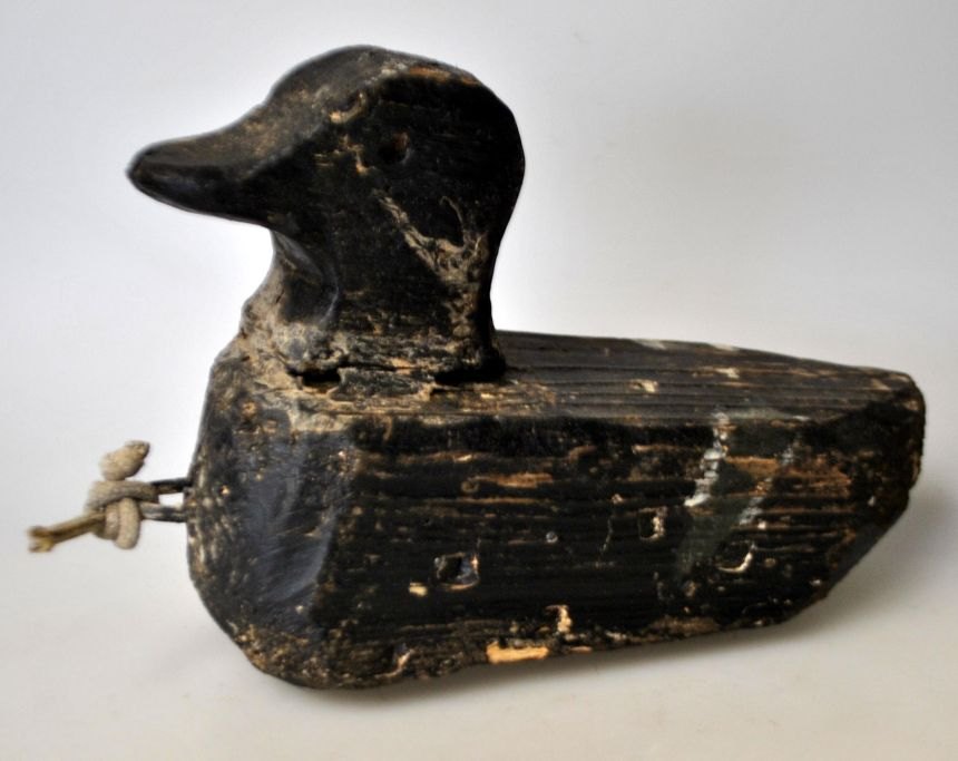 Lokkeand i bemalet træ, ca. 1920. Danmark. L.: 20 cm. H.: 14 cm.Flot stand!