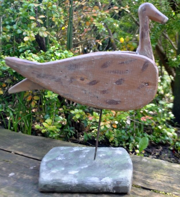 Lokkeand i bemalet træ, ca. 1920. Danmark. På fod. L.: 28 cm. H.: 32 cm.Flot stand!