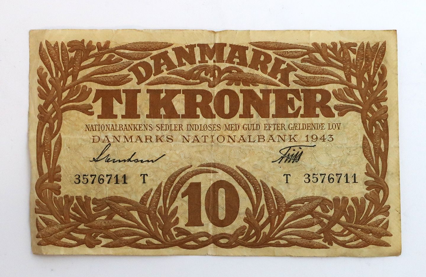 Danmark. Pengeseddel 10 kr 1943 T.