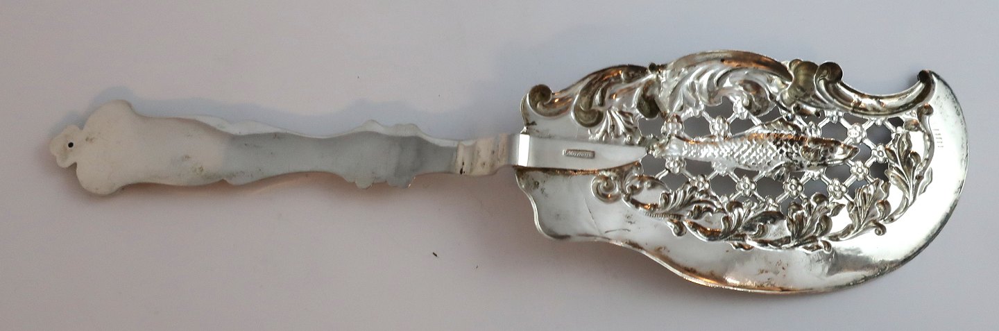Jørgen Henning Momme, Randers. (Momme). Sølv fiskespade. Længde 30 cm. Udstiller