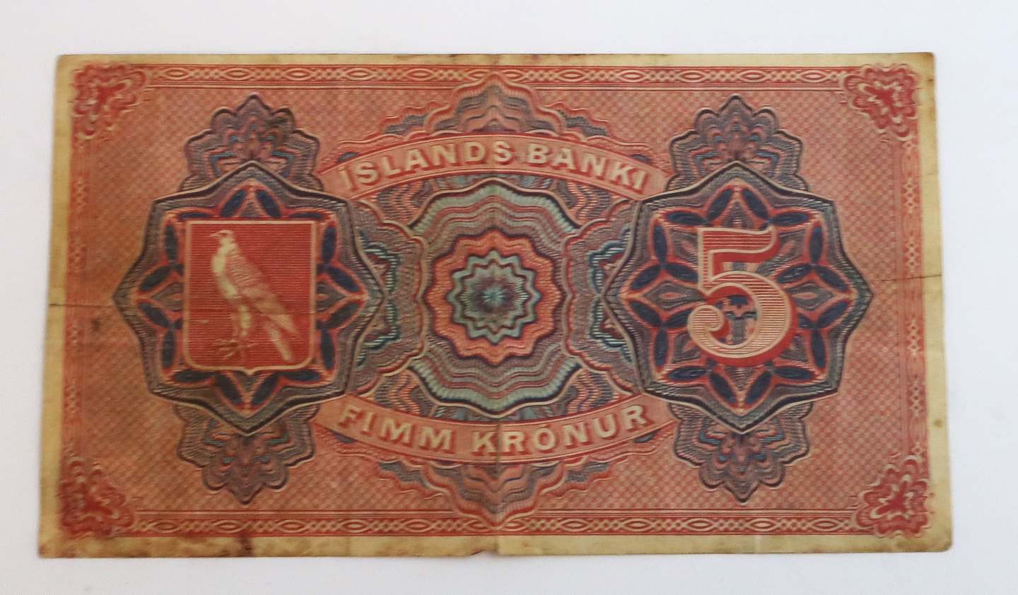 Island. Christian lX. 5 krone pengeseddel 1904. Revne i midten. Udstiller