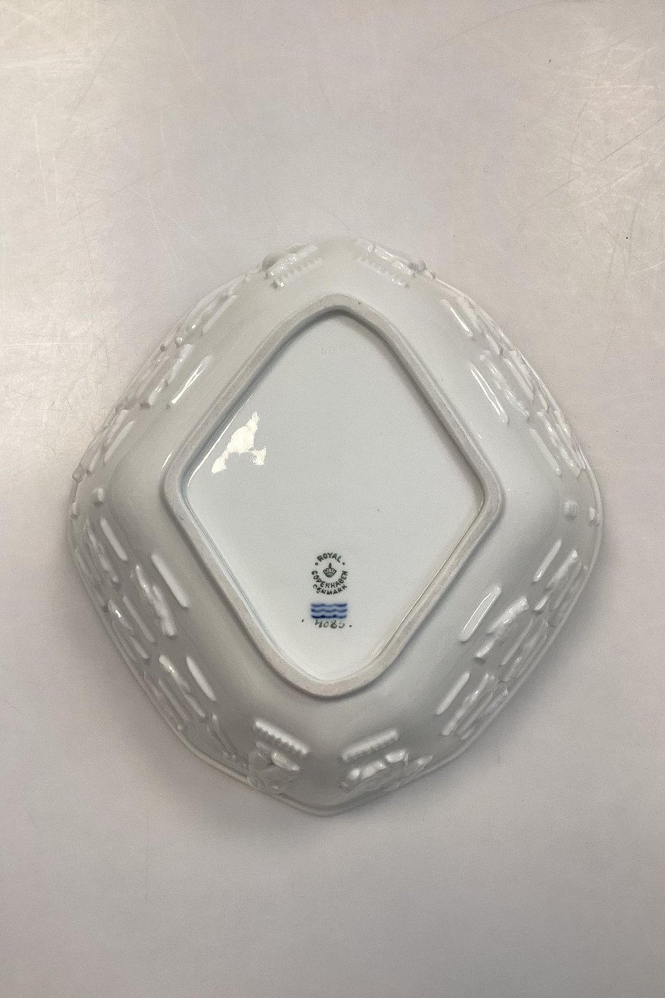Royal Copenhagen Blanc de Chine Skål af Bode Willumsen No. 4085Med motiver af fisk og fiskere.