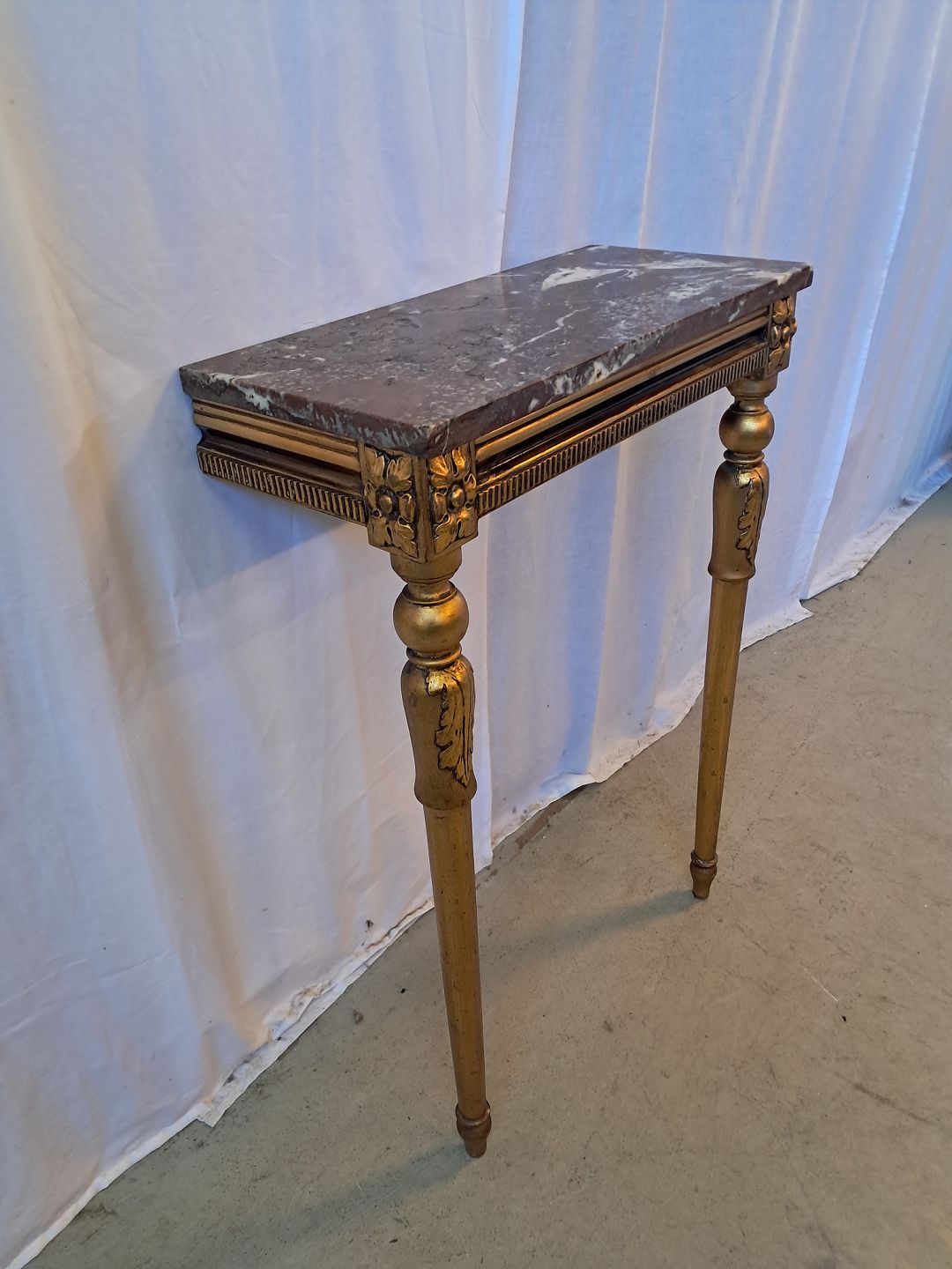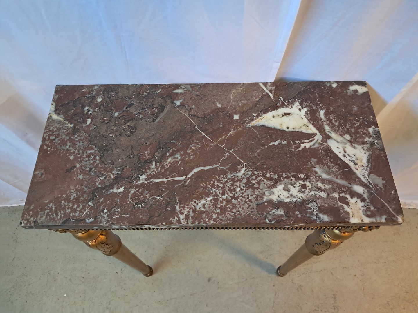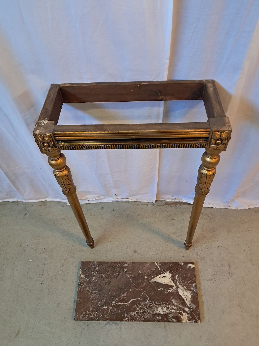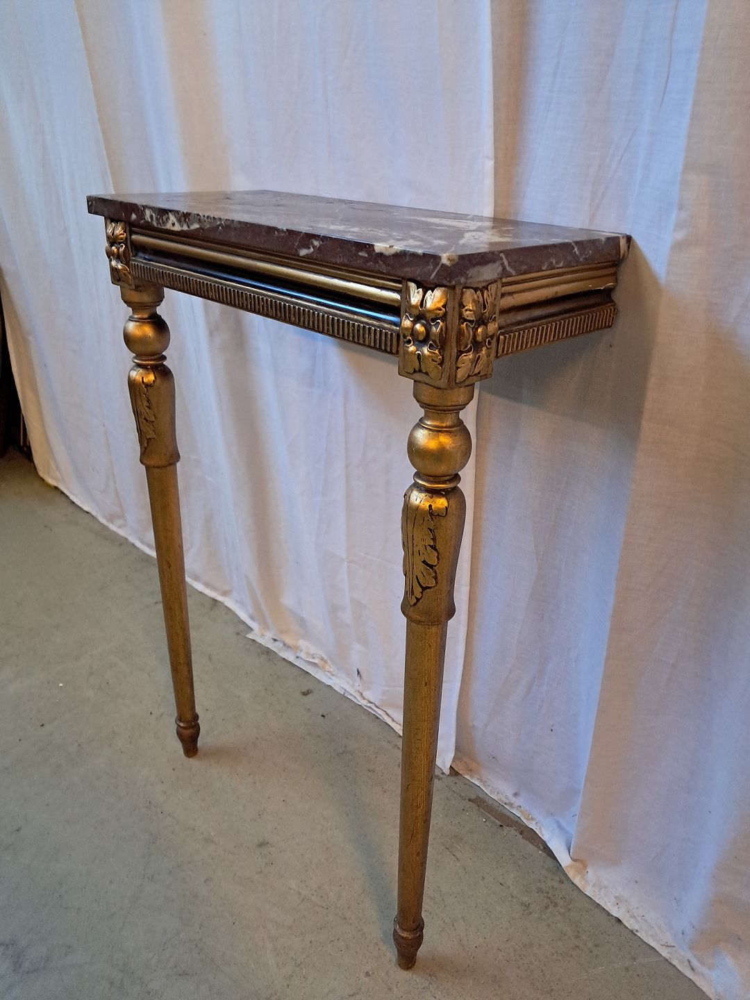 Guldmalet konsol med marmorplade, fra 1920erne.Det har brugsspor.