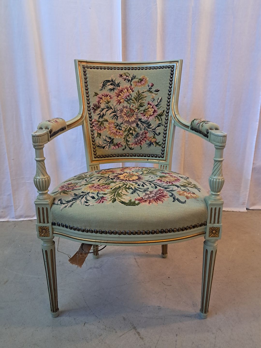 Malet rokokostol, fra 1950erne.Den har brugsspor og defekt bund. (se foto)