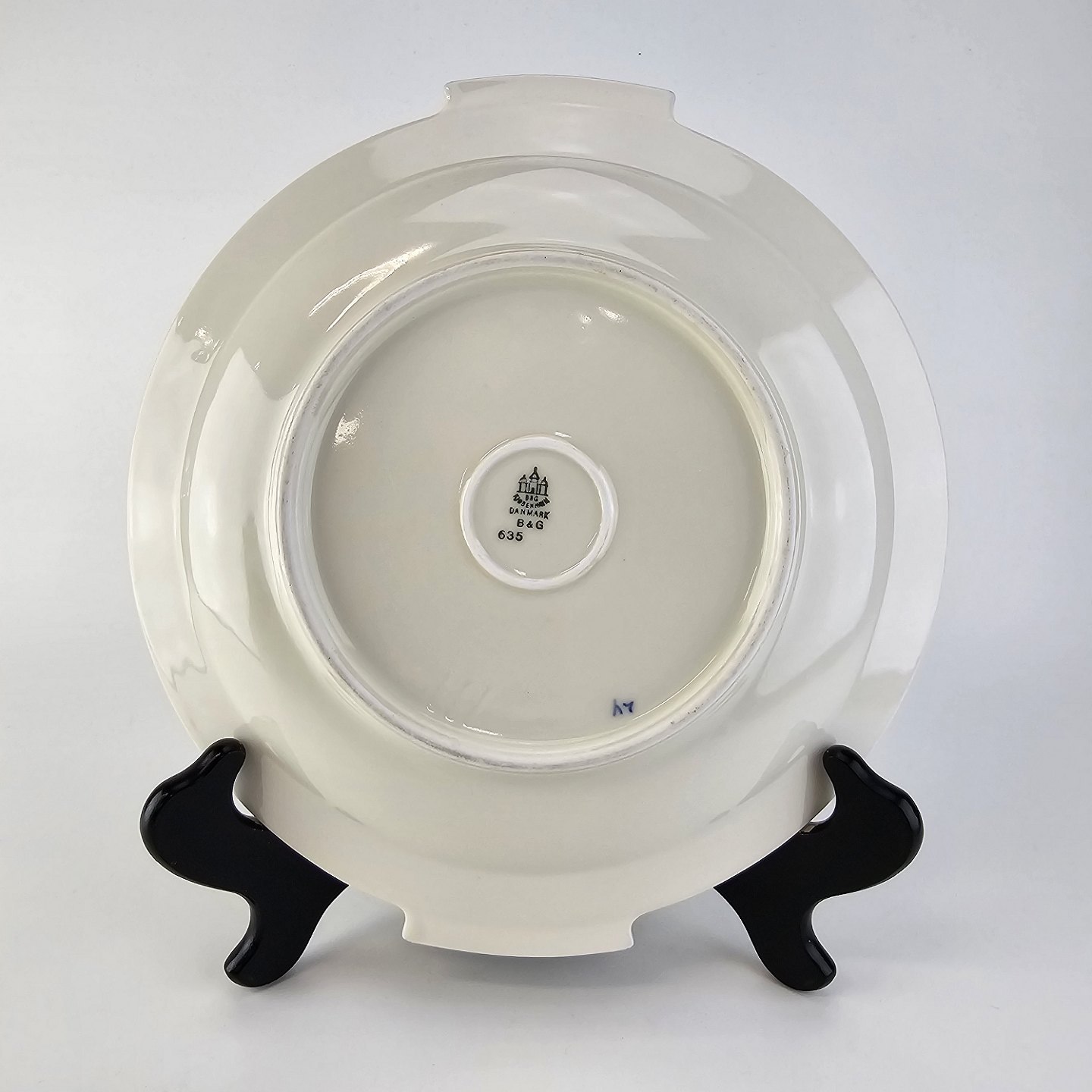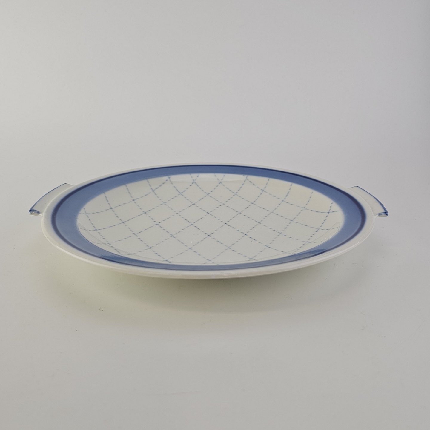 Rundt fad med hanke af porcelæn fra stellet Prik 25Producent Bing & Grøndahl