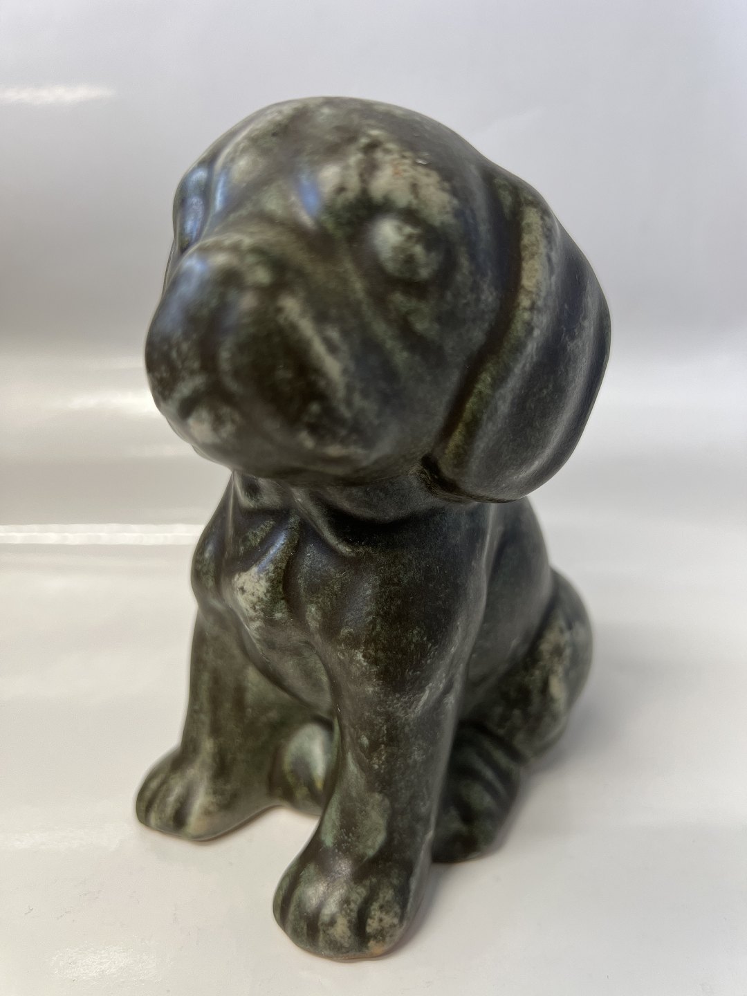Johgus, Figur hund, Bornholmsk keramik.Højde 12,5 cm.