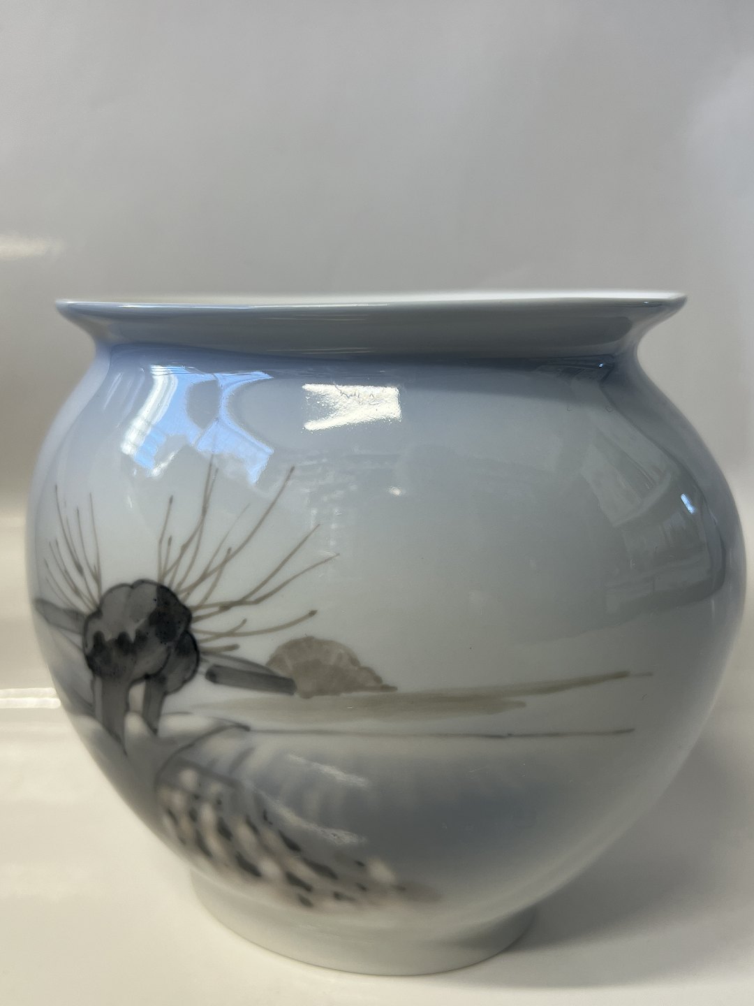 Oval Lyngby Vase med snelandskab.Dekorationsnummer 75/180.