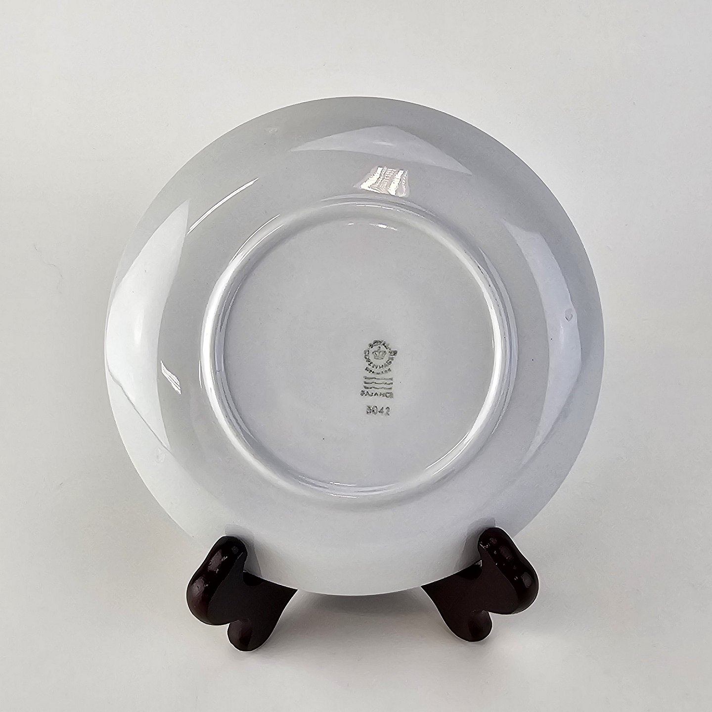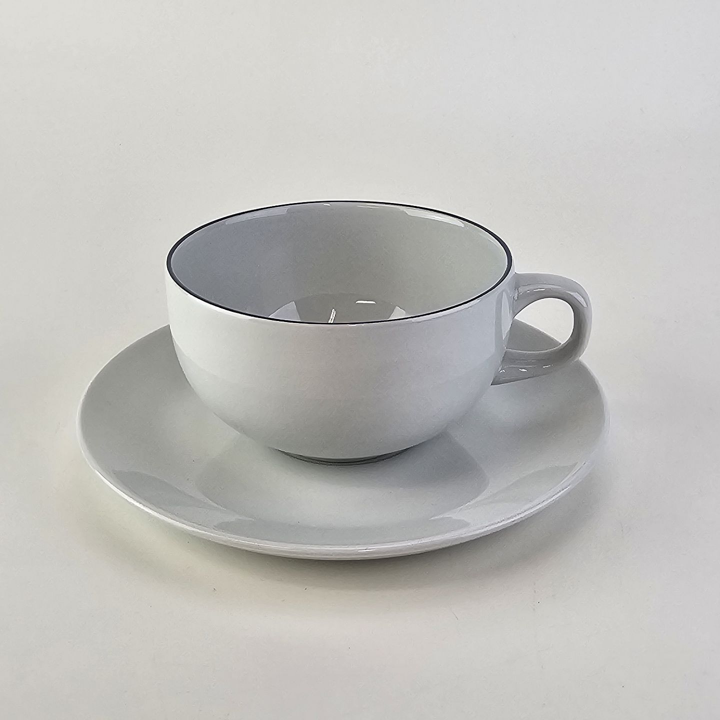 Blåkant er stel i hvid fajance med dekoration af en blå streg på kanten