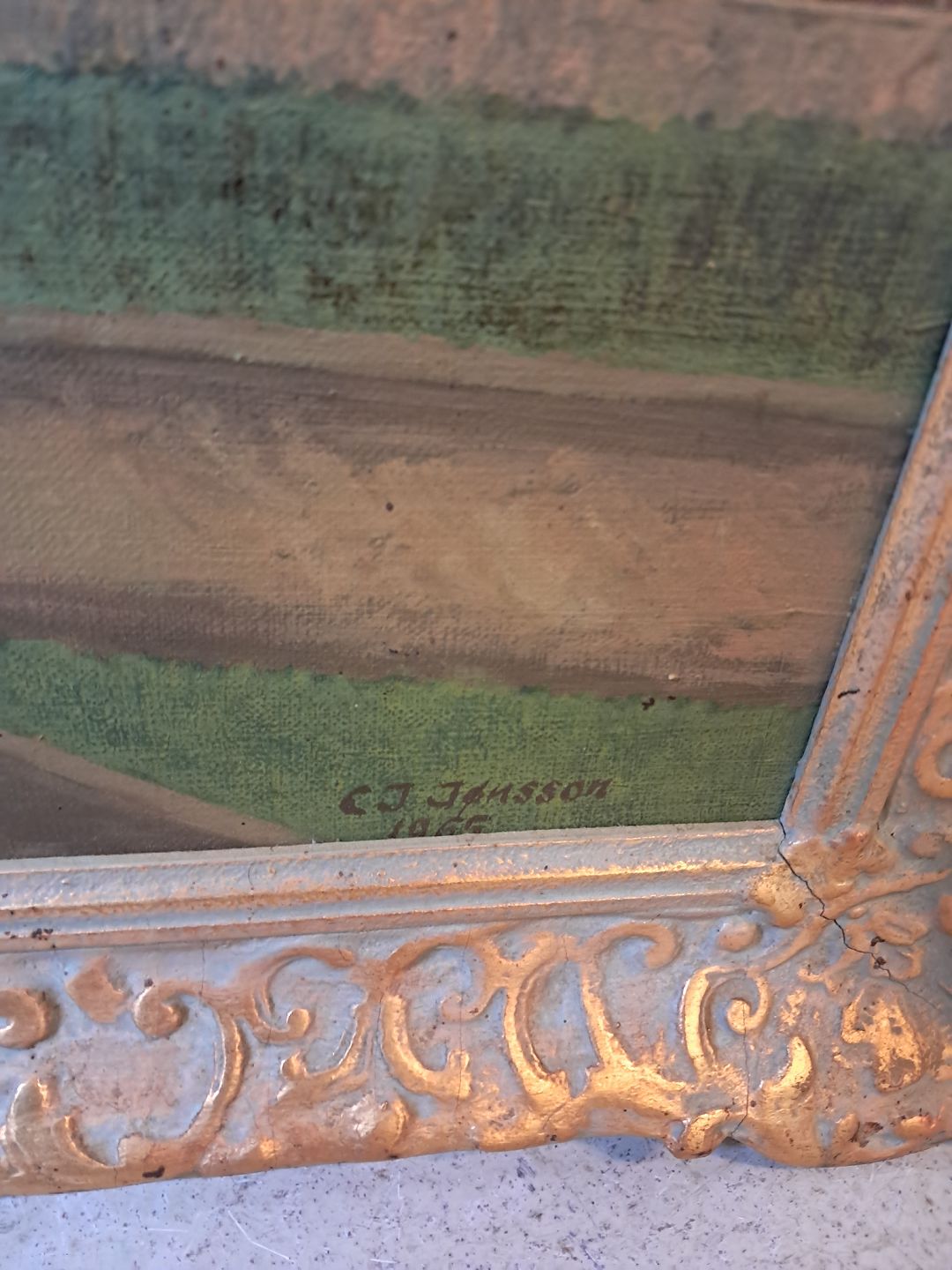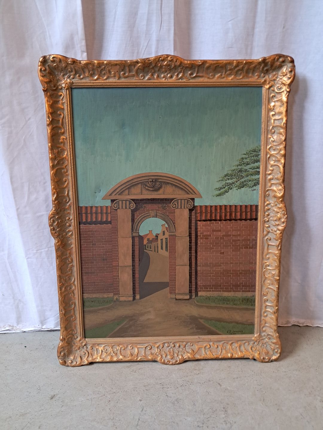Maleri i guldmalet ramme, fra 1950erne.Det har brugsspor.