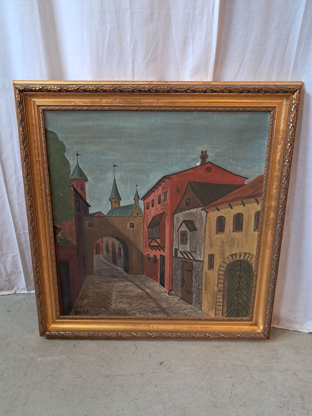 Maleri i guldmalet ramme, fra 1950erne.Det har brugsspor.