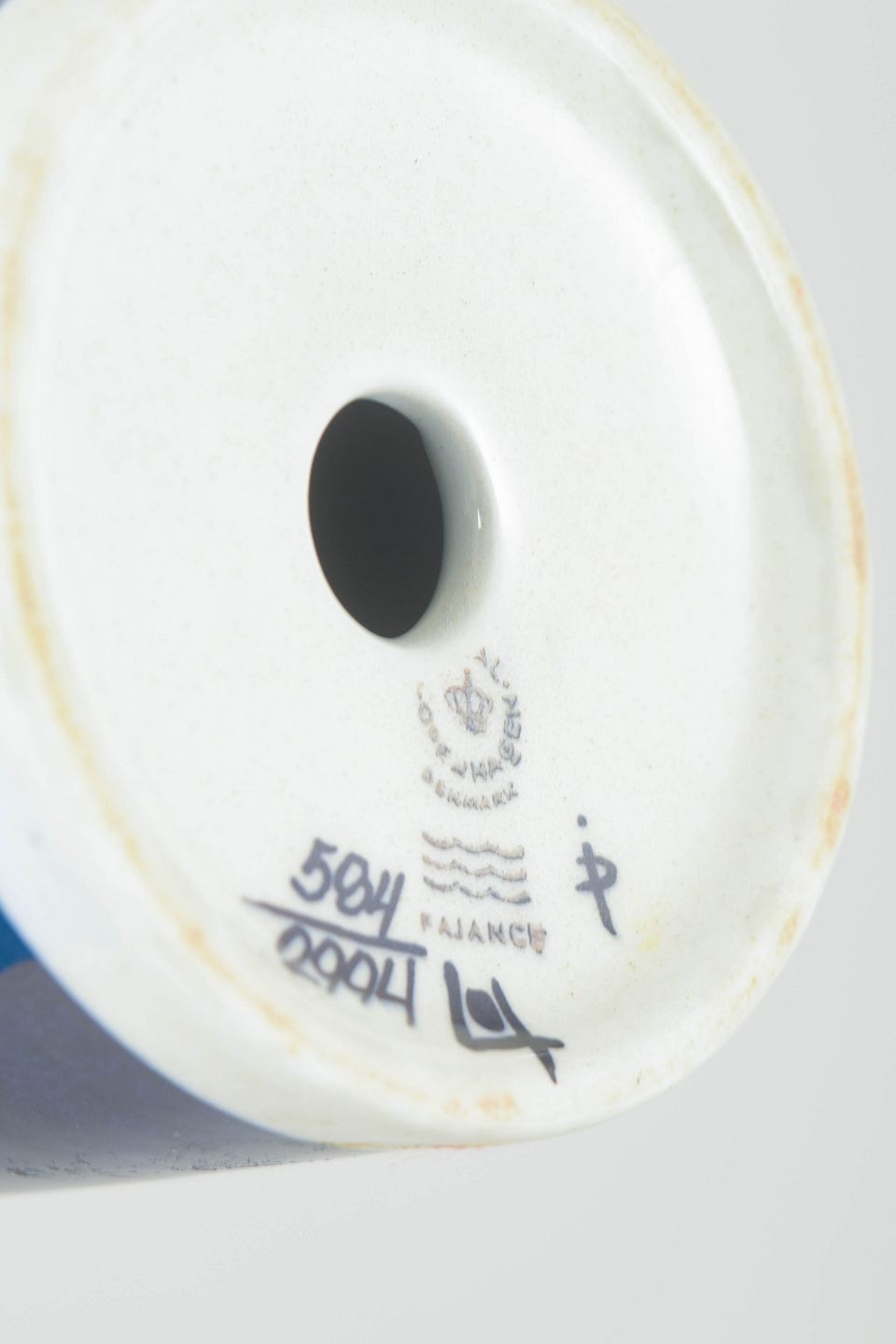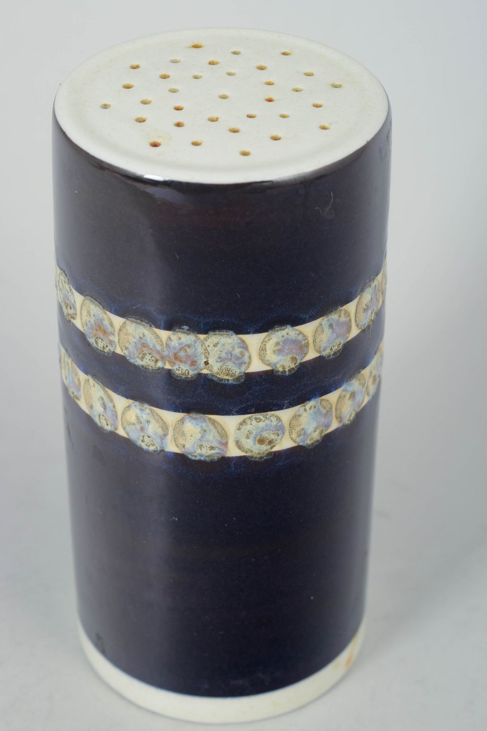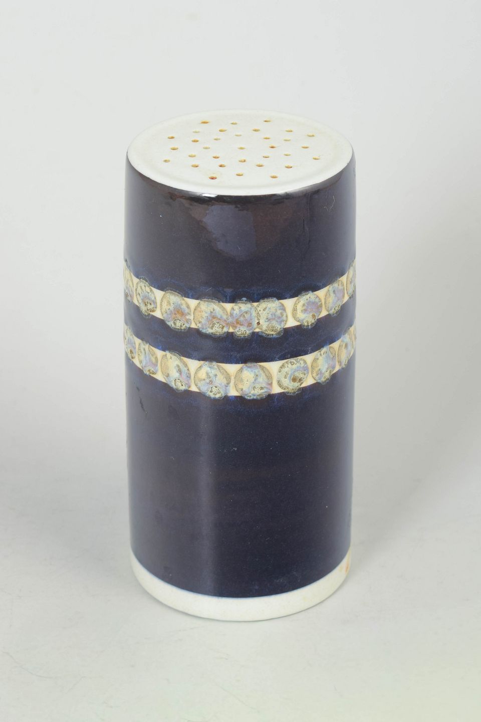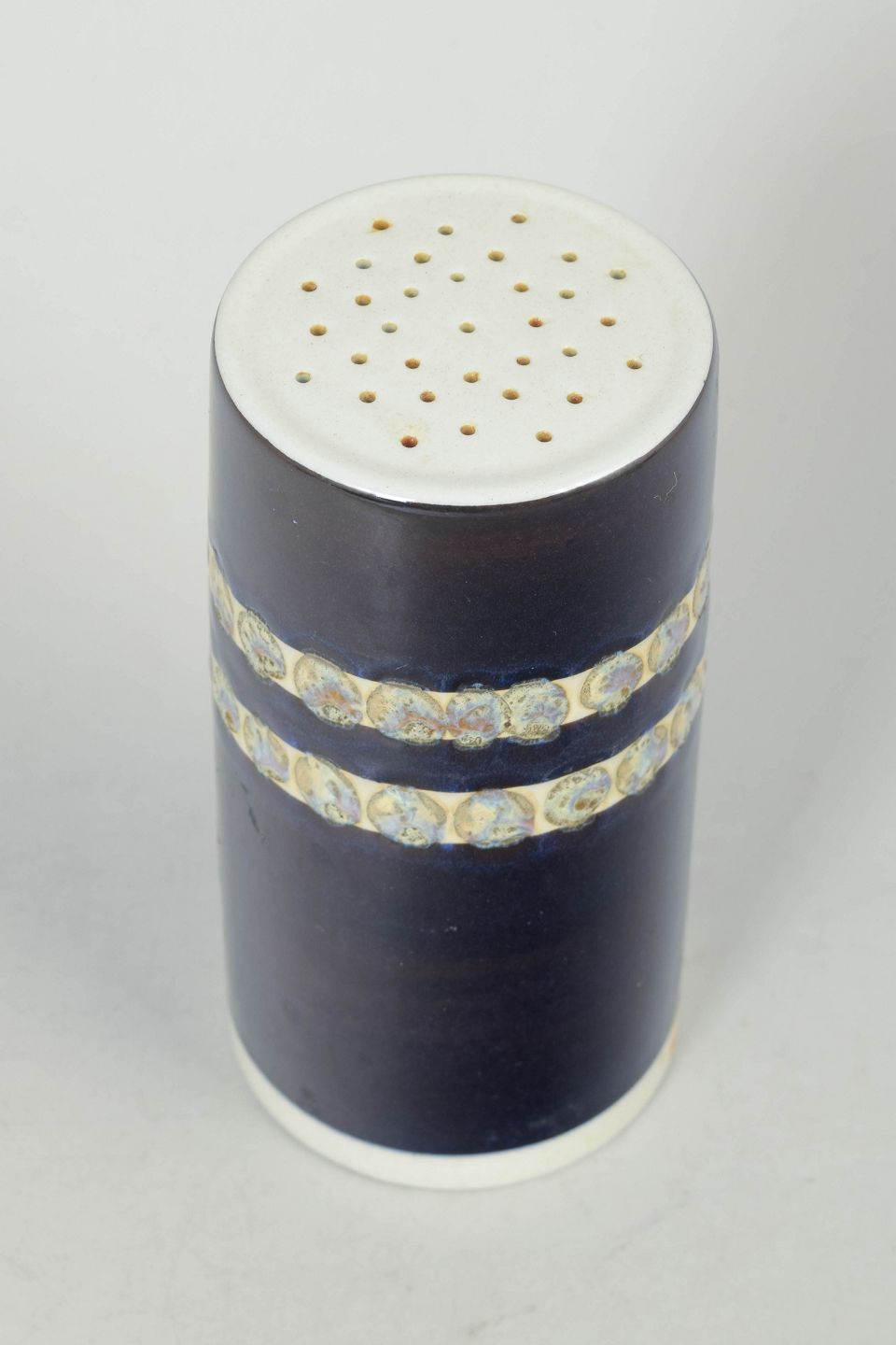 Inge-Lise Koefoed for Royal Copenhagen, sukkerstrøer.Porcelæn sukkerstrøer fra 1956, model 584/2994, udført i cylindrisk form med dyb blå glasur og dekorative bånd med stiliseret motiv.