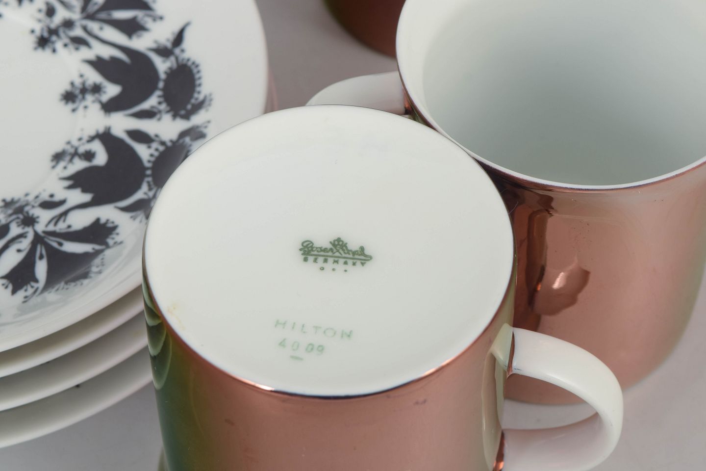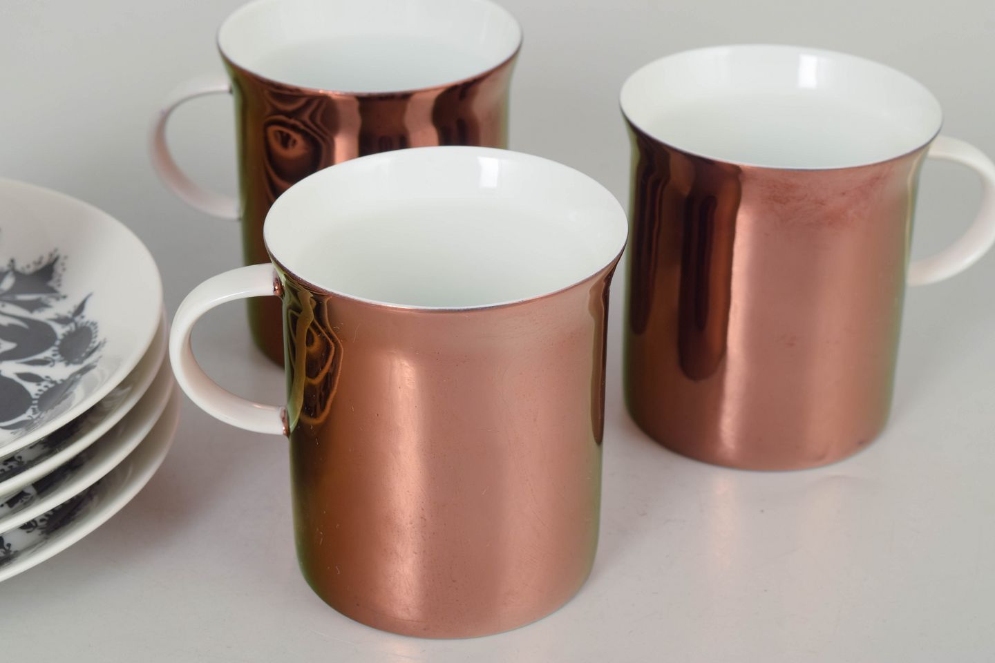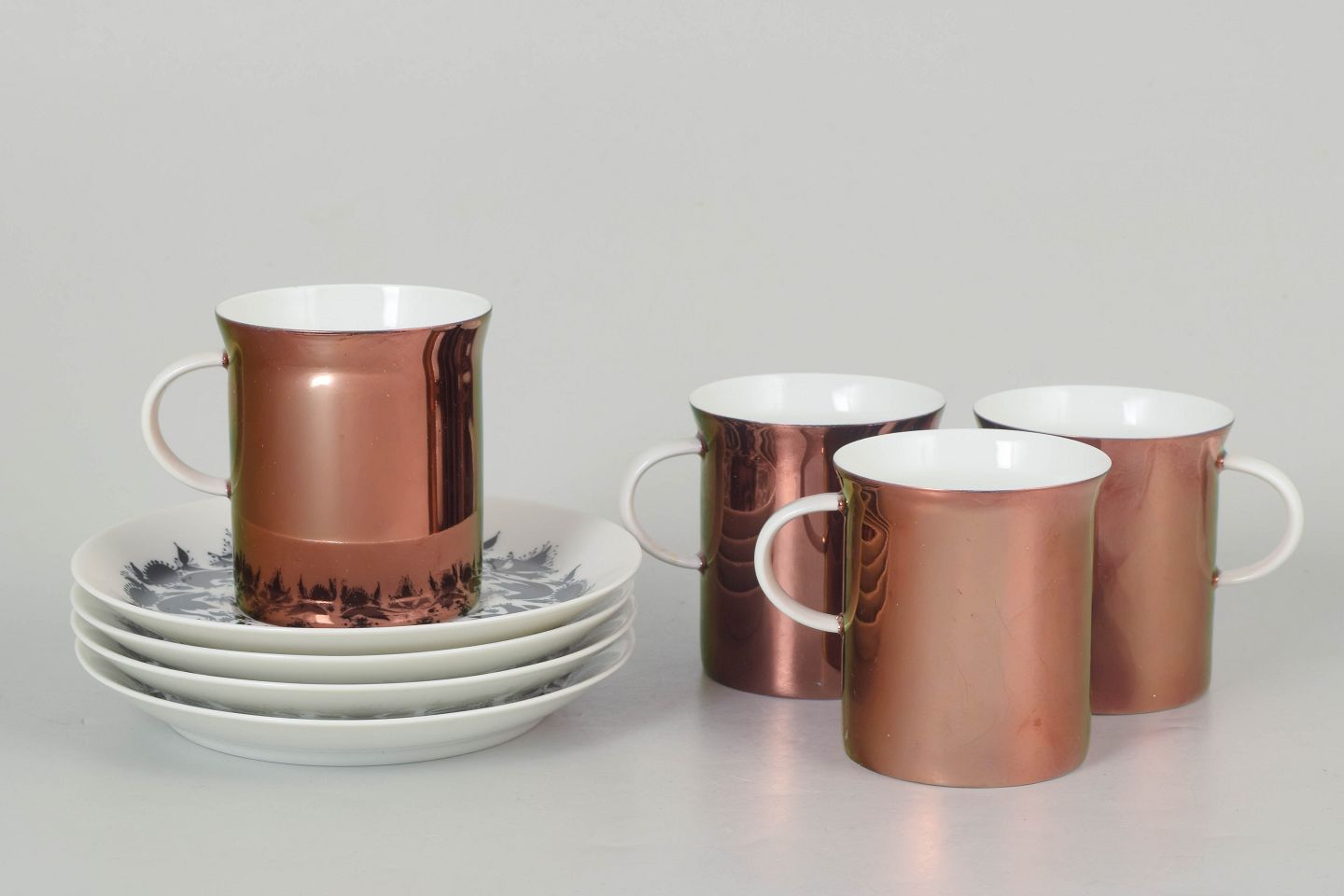 Dimensioner: Kopper H. 7 cm, D. 8 cm, underkopper D. 14 cm.