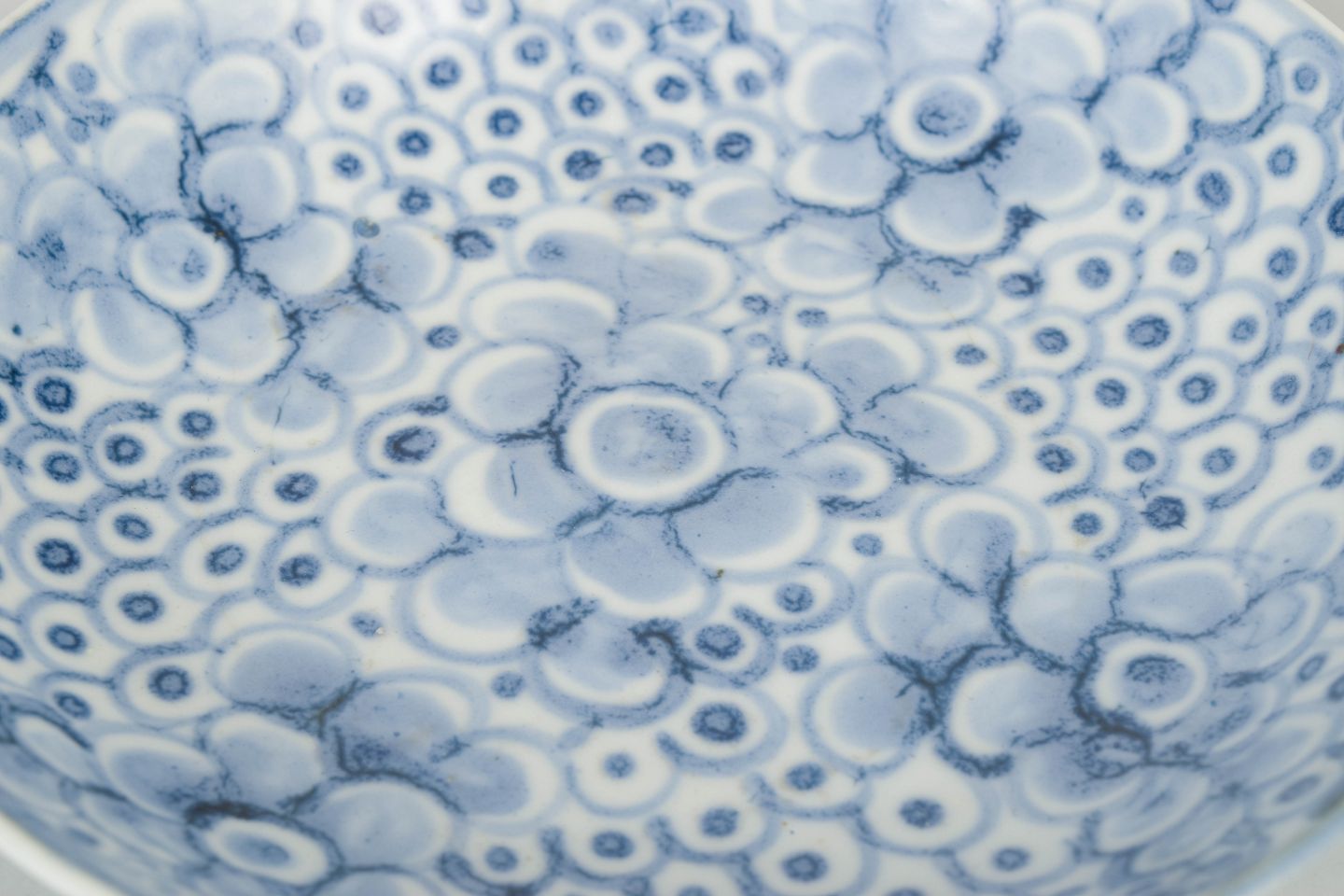 Kinesisk skål i Ming stil.Rund skål i porcelæn dekoreret i underglasurblå med stiliserede blomster og cirkulære mønstre. Uden synlig mærkning.