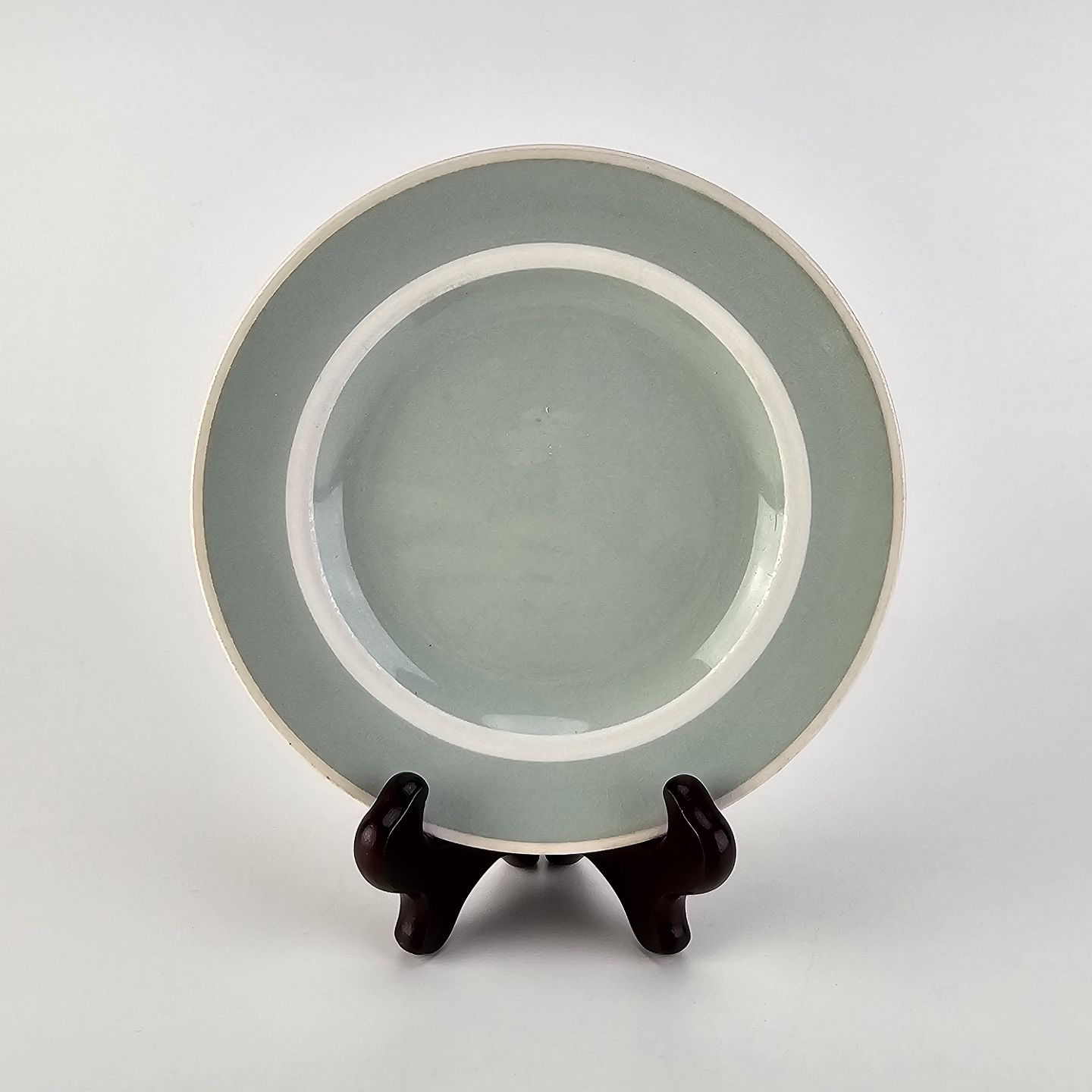 Fajancestel i pastelgrøn farve med hvid stribe