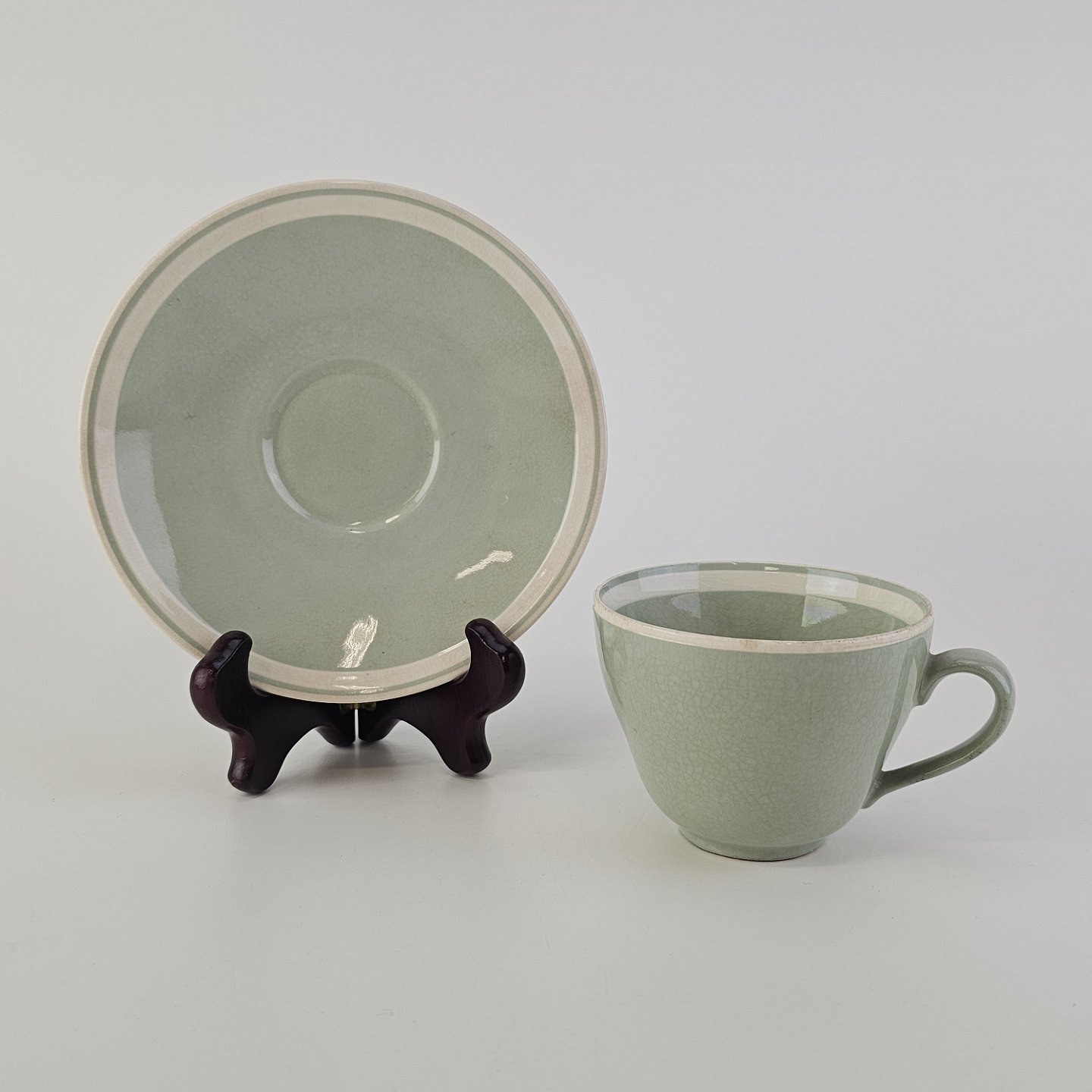 Fajancestel i pastelgrøn farve med hvid stribe