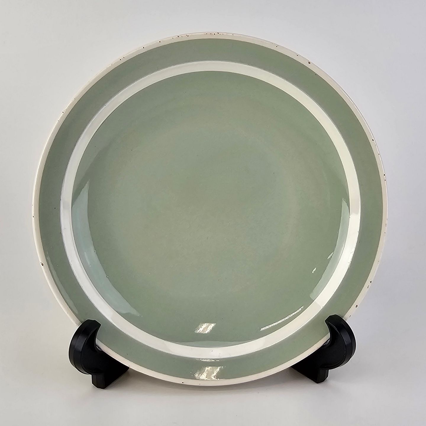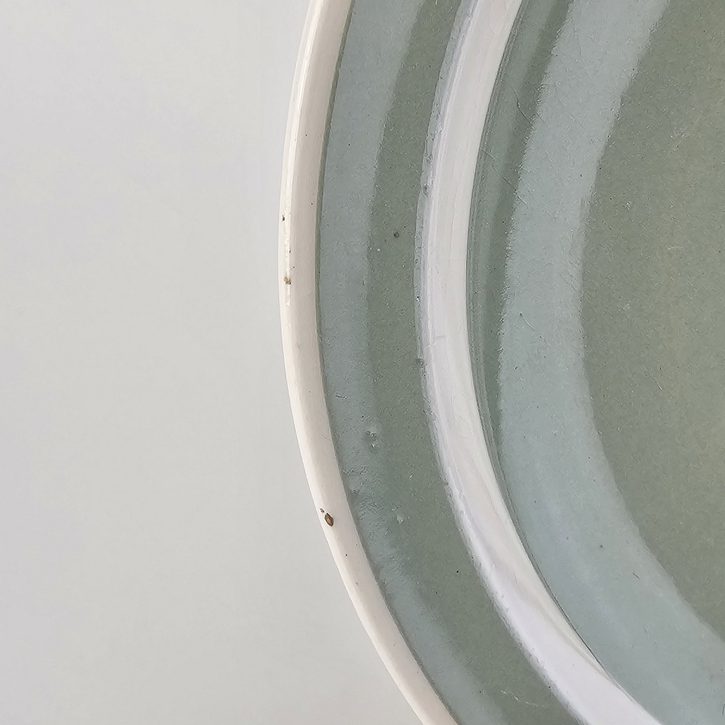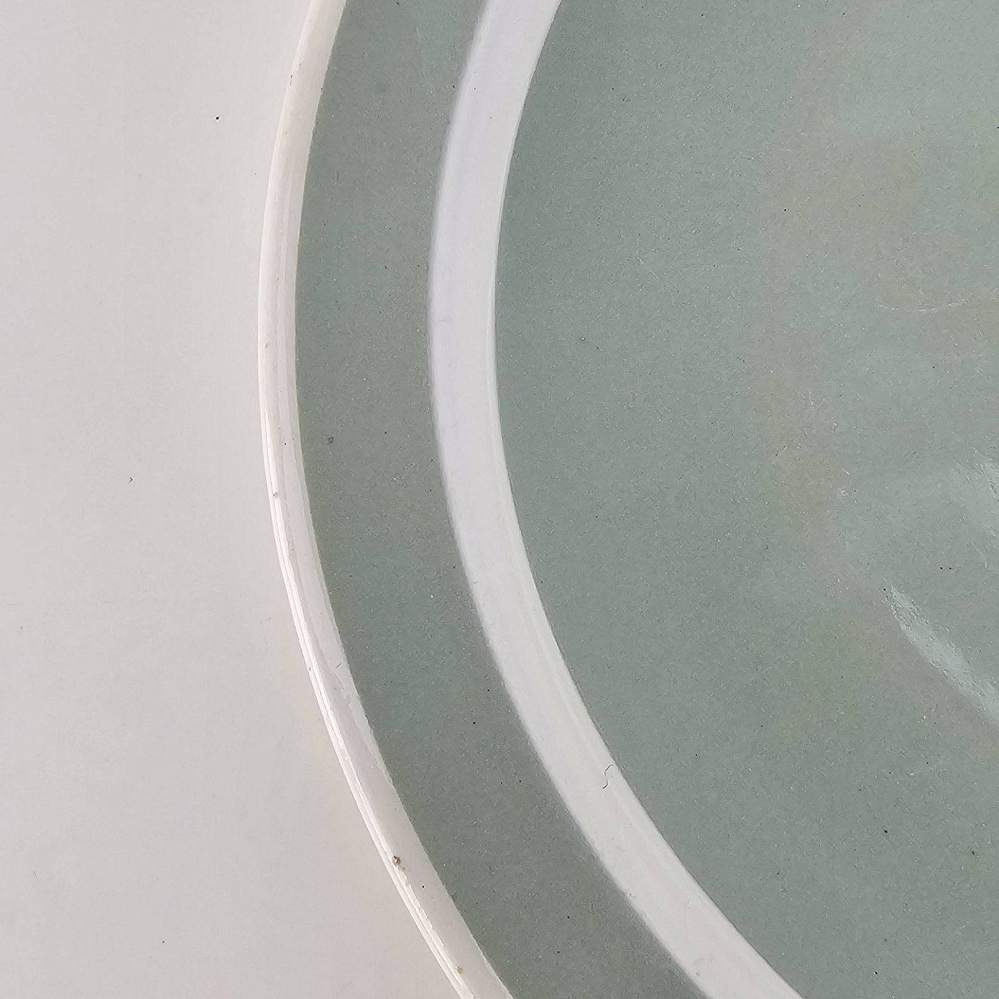Fajancestel i pastelgrøn farve med hvid stribe