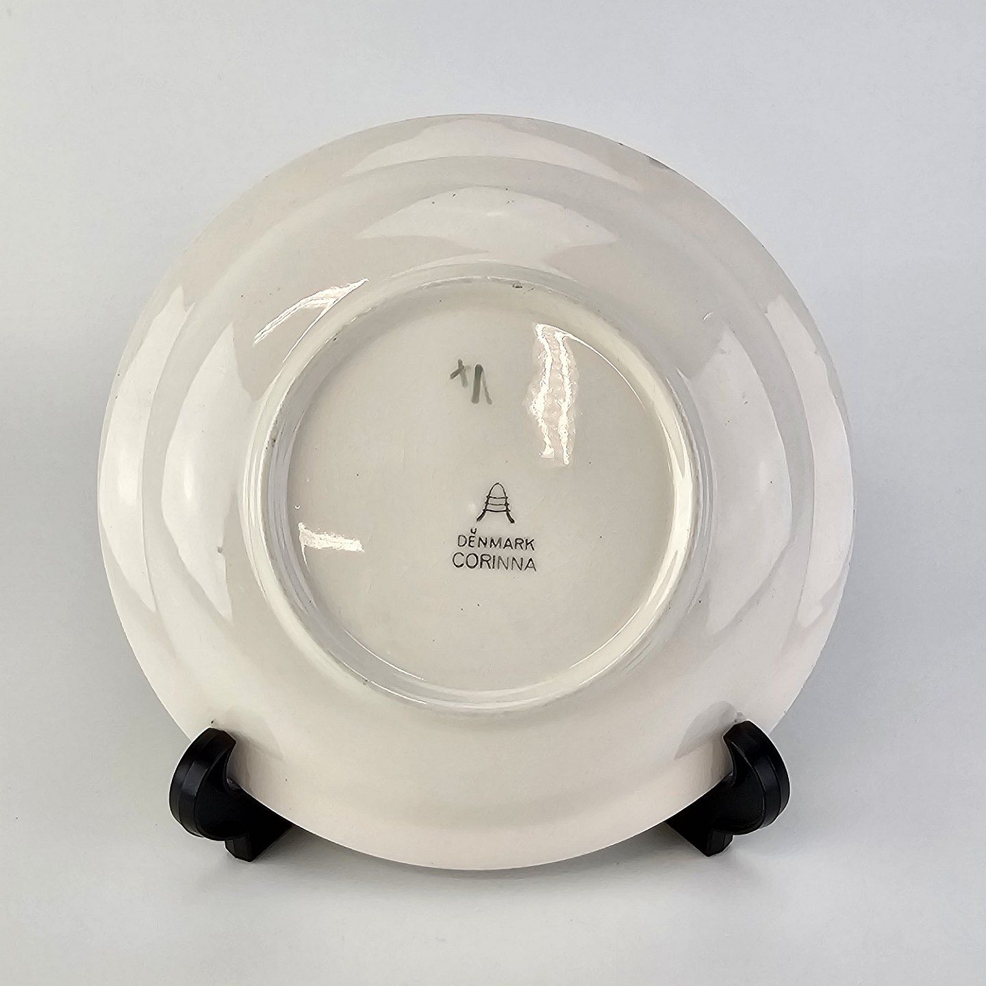 Tallerken i fajance fra stellet Corinna fremstillet i perioden 1937-1966Formgiver Nils Thorsson