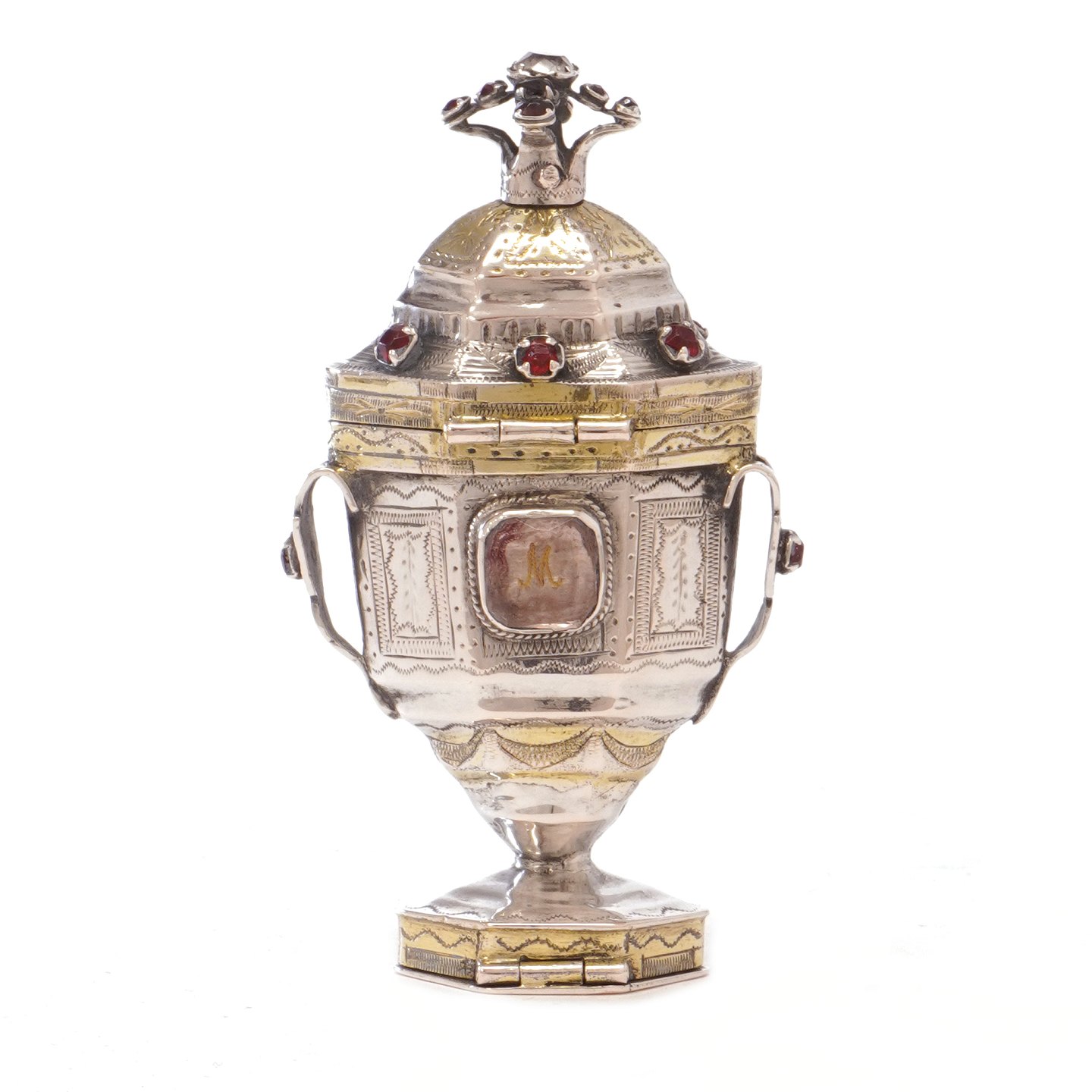 Hovedvandsæg i delvist forgyldt sølv udført af Martin Petersen Hommelhoff, Tønder, ca. år 1820H: 9,5cm