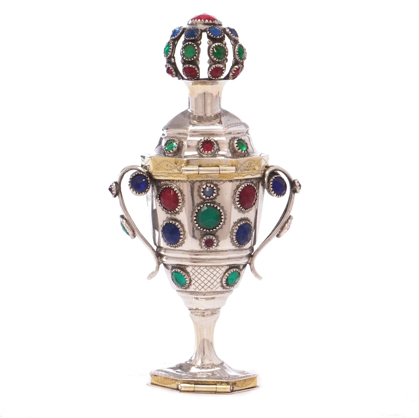 Hovedvandsæg i sølv med 57 flusser udført af Jens Jensen, Sønderborg, ca. år 1860H: 13cm